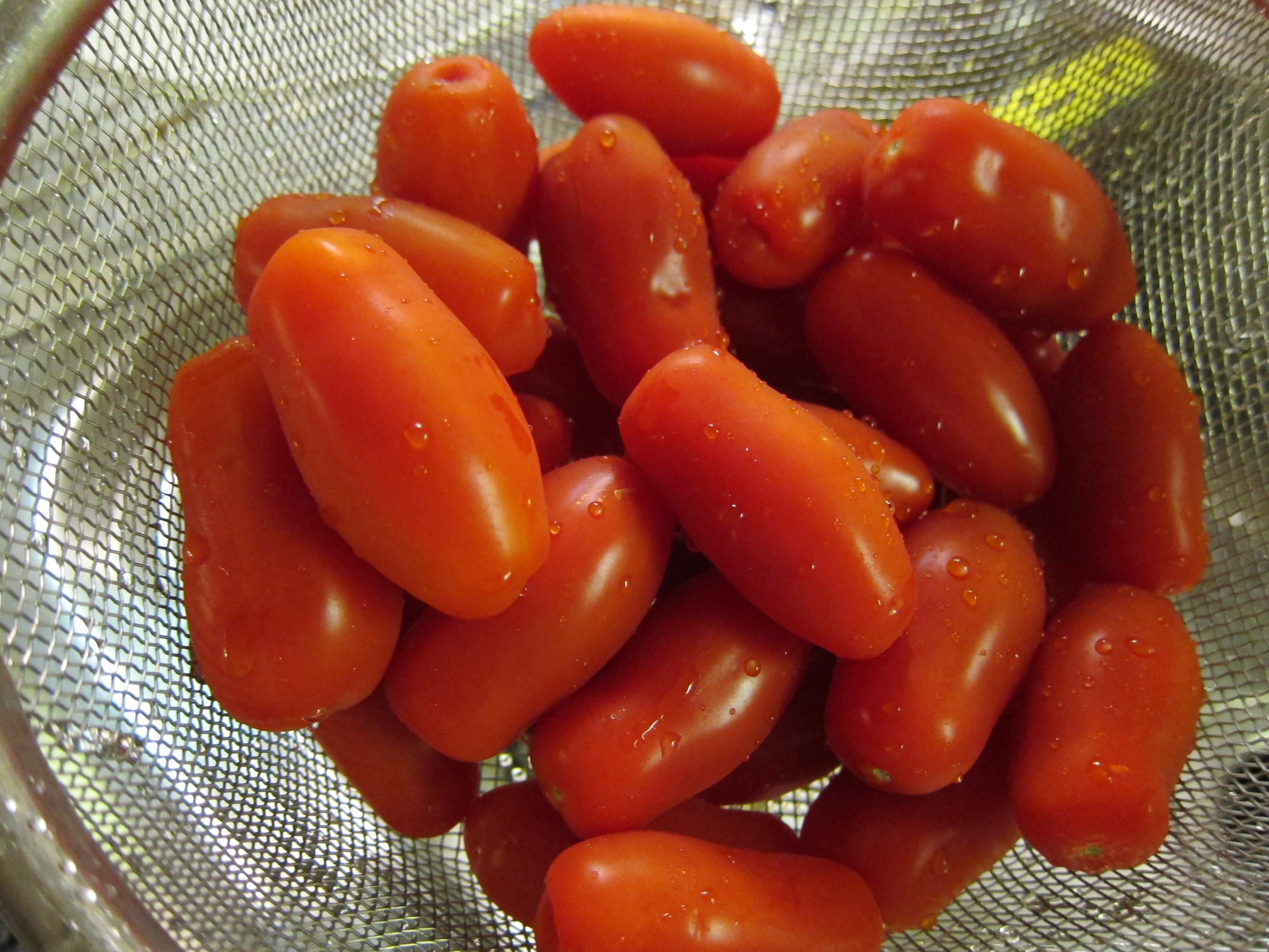 1 lb. baby San Marzano tomatoes, halved. Feel free to substitute with any fresh red and juicy tomatoes.