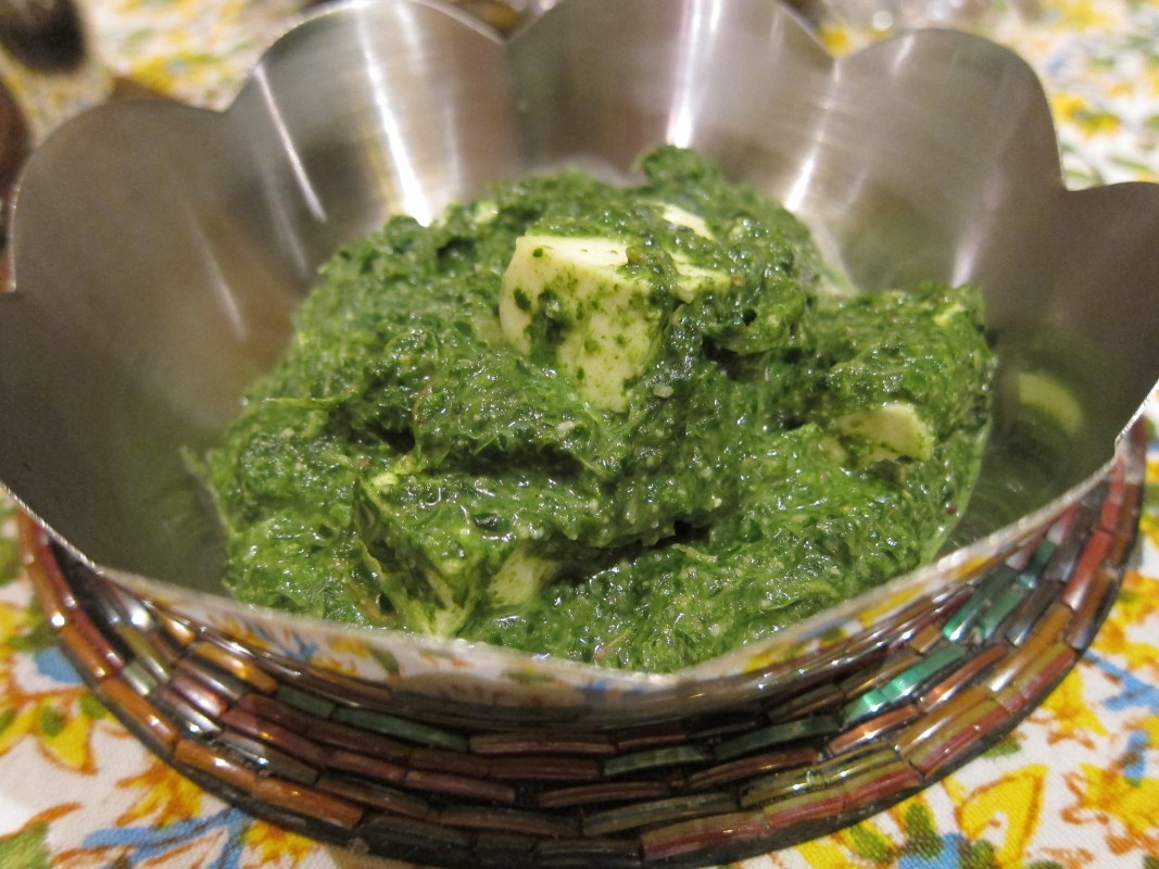 Sauté for a few seconds, do not let the garlic burn. Add the puréed greens. Sauté for a minute over medium heat. Add the remaining spices. Simmer on low heat for 5-7 minutes. Add the cashew-nut paste, further simmer for 5 minutes.
