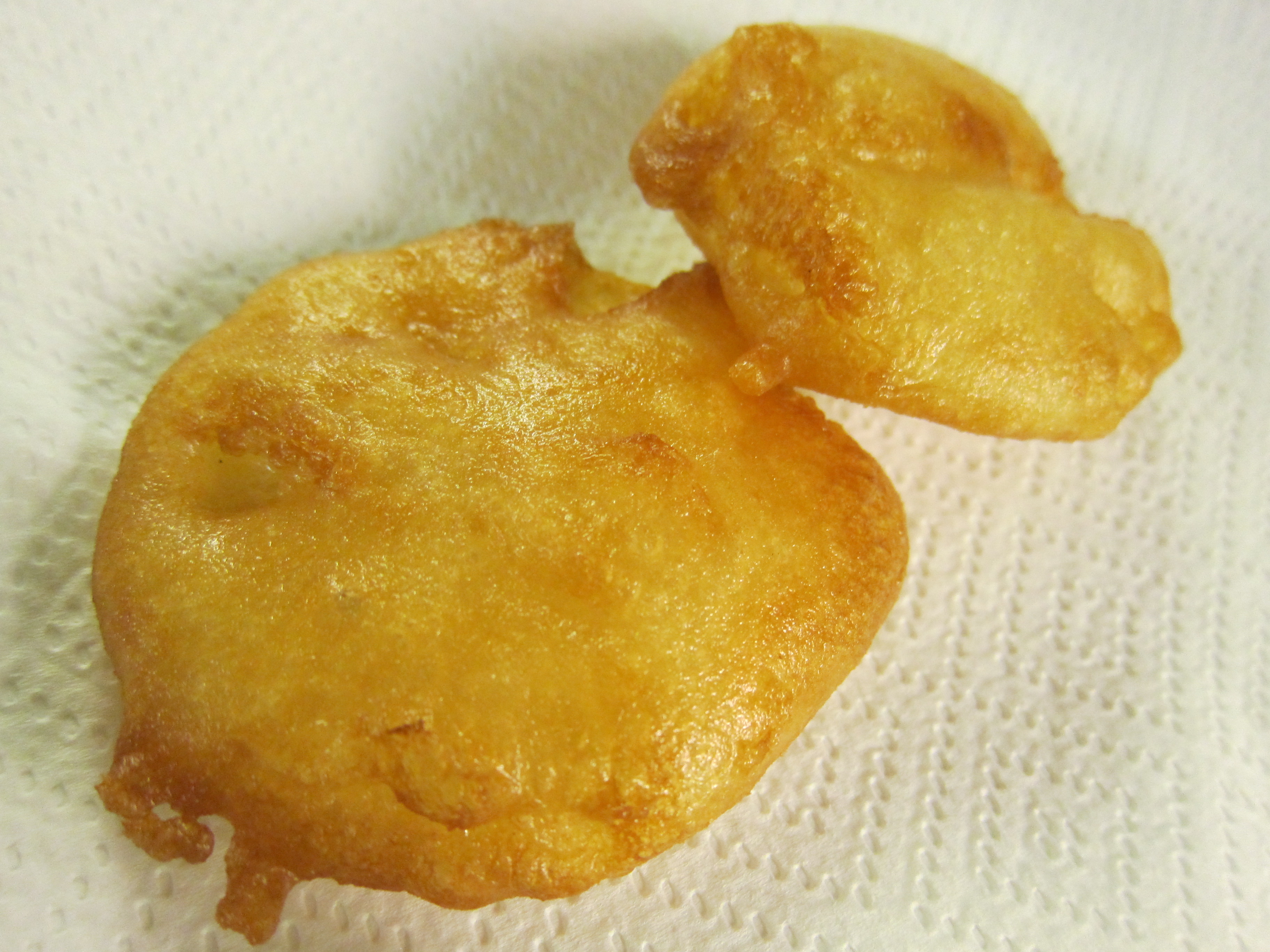 Heat oil in a deep-bottomed wok. Add a drop of batter, if it rises to the surface, the oil is hot enough. Dip the apple slices in the batter a few at a time and deep