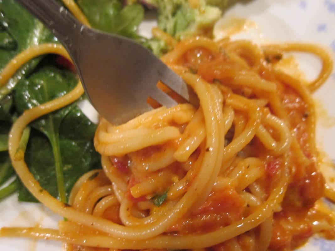 To compliment this delicious pasta, an easy to whip up mixed greens salad with a pomegranate-grapefruit vinaigrette. Coming up in my next blog….