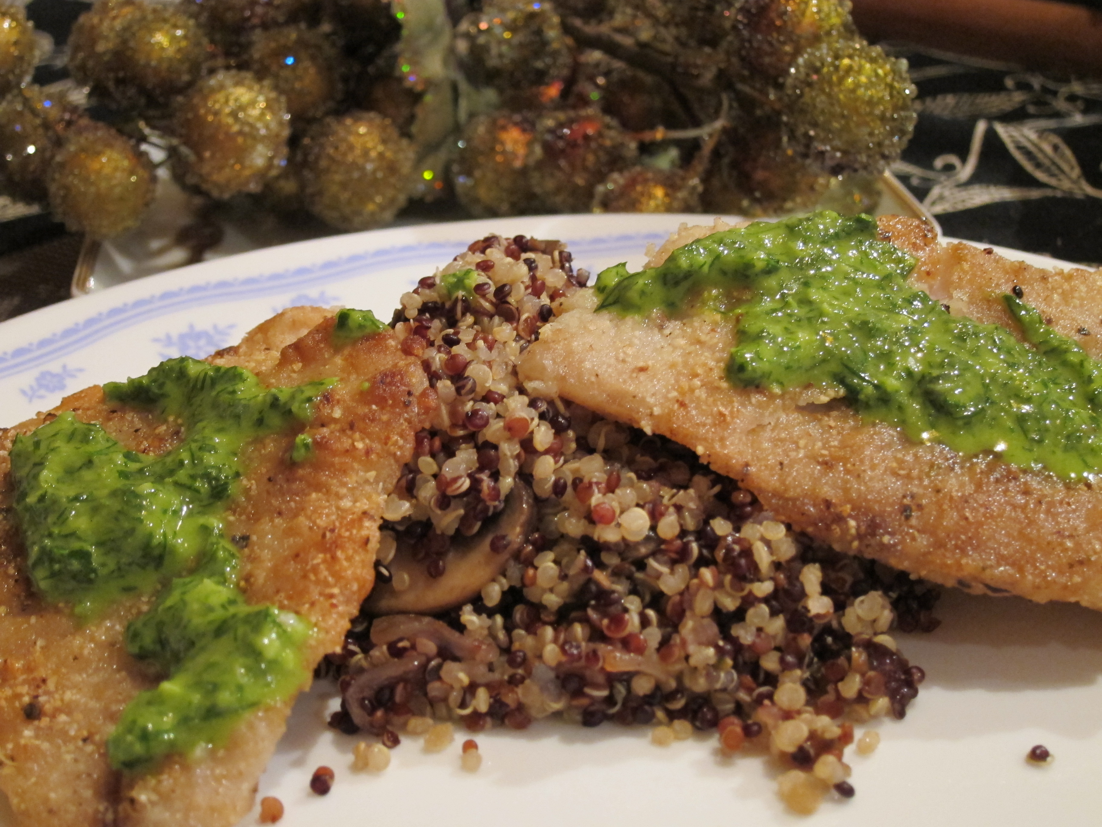 Arrange fillets on a plate. Spoon the chimichurri on top. Serve on a bed of quinoa.
