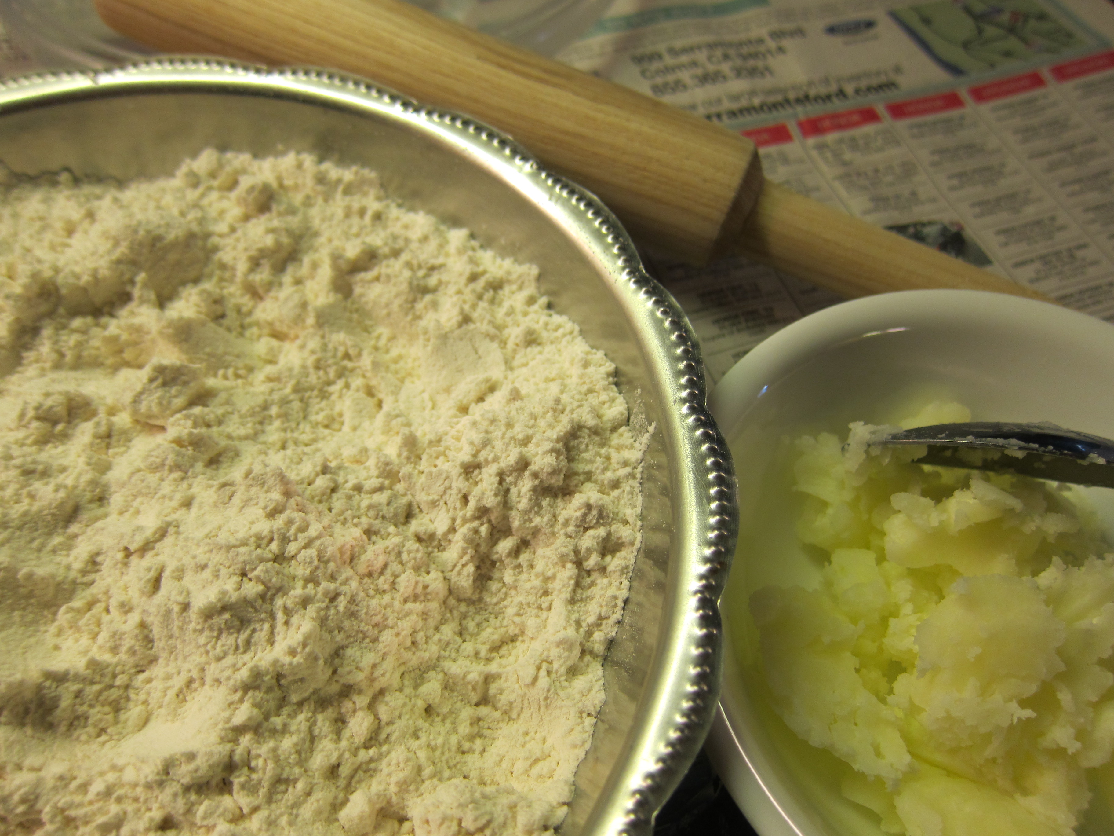 e the dough with both your hands every now and then. This adds more flakiness to the dough, a helpful tip given by my mother-in-law. The dough should at this stage should have pea-size crumbles. Add a little cold water at a time and bring the dough together to form a stiff dough, shape to form a ball. Set aside to rest for 30 mins.