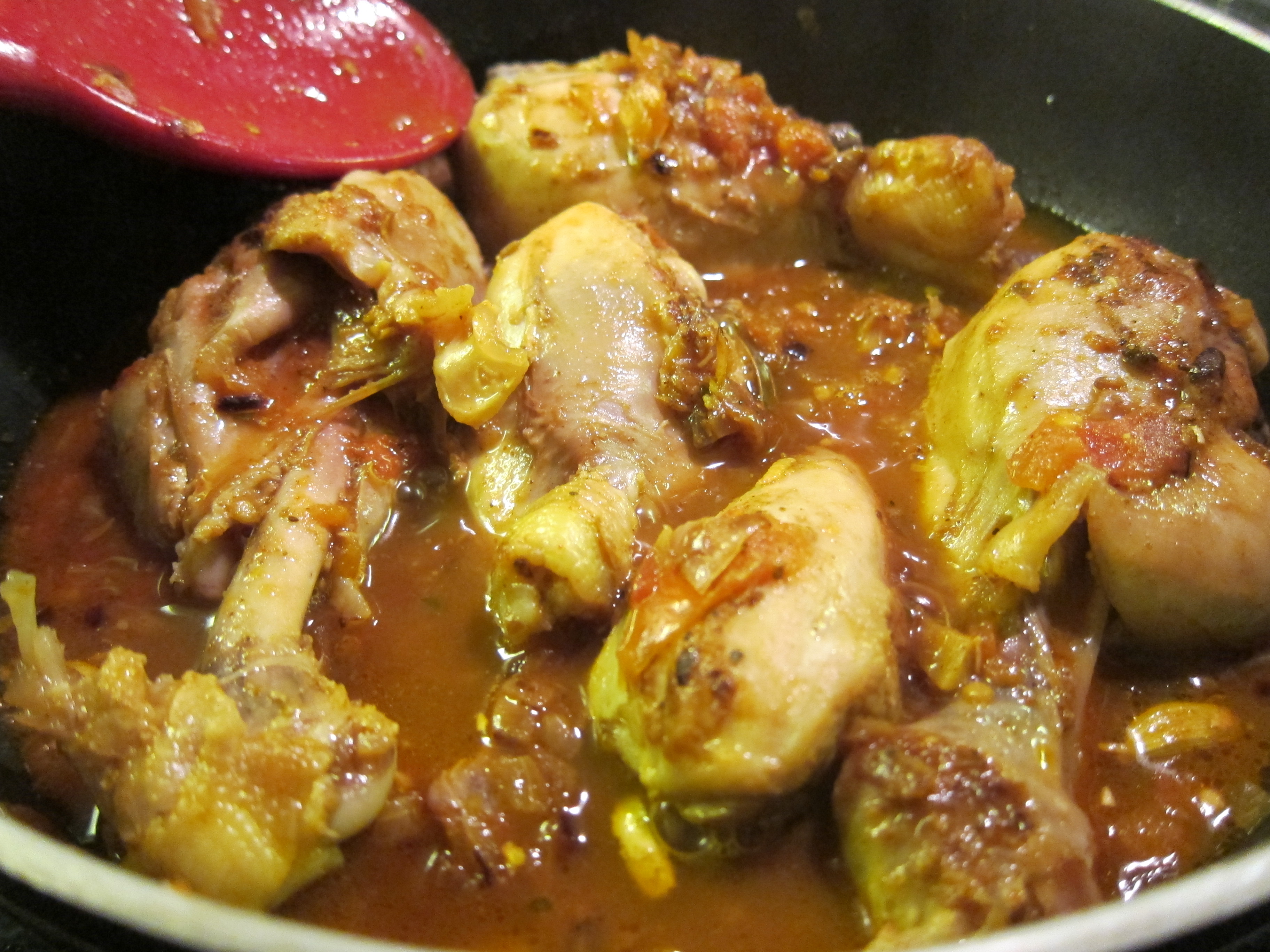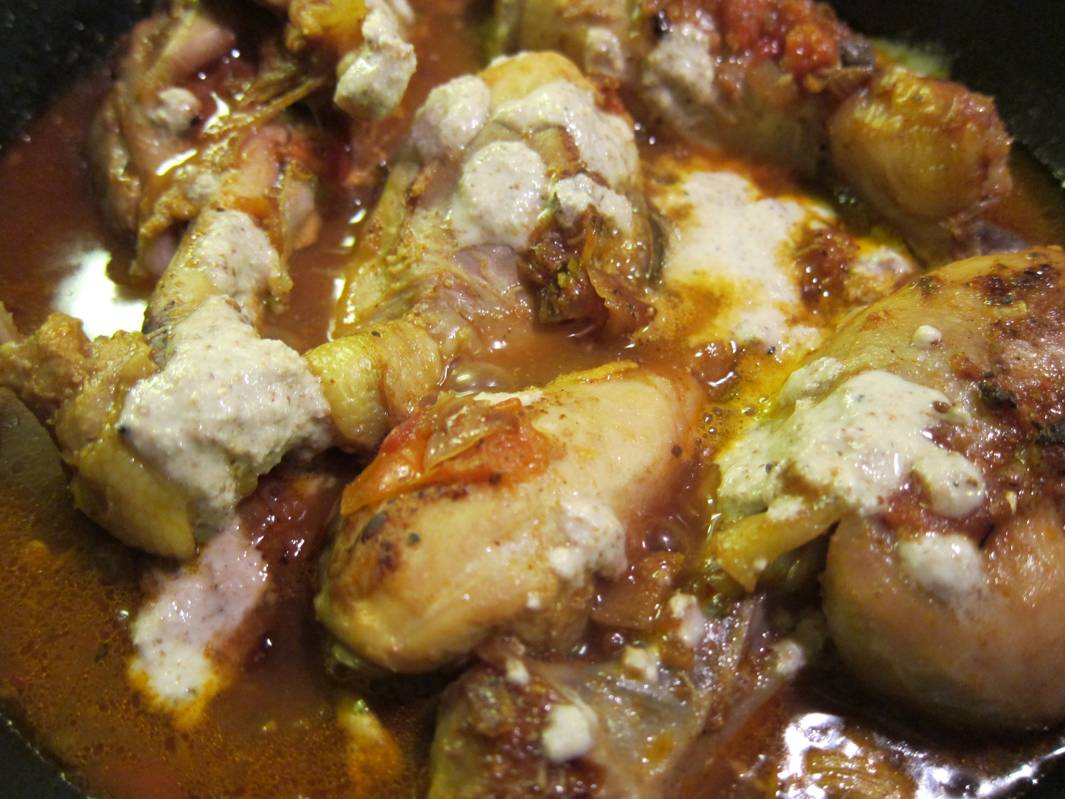 Today, for a leisurely Saturday dinner at home, I decided to make chicken masala. It’s simple, with basic ingredients one would use in any Indian curry. For a slight twist and creamy texture to the dish, I added a dollop of cashewnut, white poppy seeds and white sesame seeds paste. It imparts a nice and nutty taste to the masala. I also made a small batch of fresh garam masala powder, it makes a big difference! I used chicken legs, since my little daughter loves them in any way! One can use any cut of chicken, preferably with the bones intact. The dish turned out delicious, I am not boasting :-). It can be eaten with rotis, parathas, naans, plain rice or pilaf, whatever floats your boat that day 🙂
