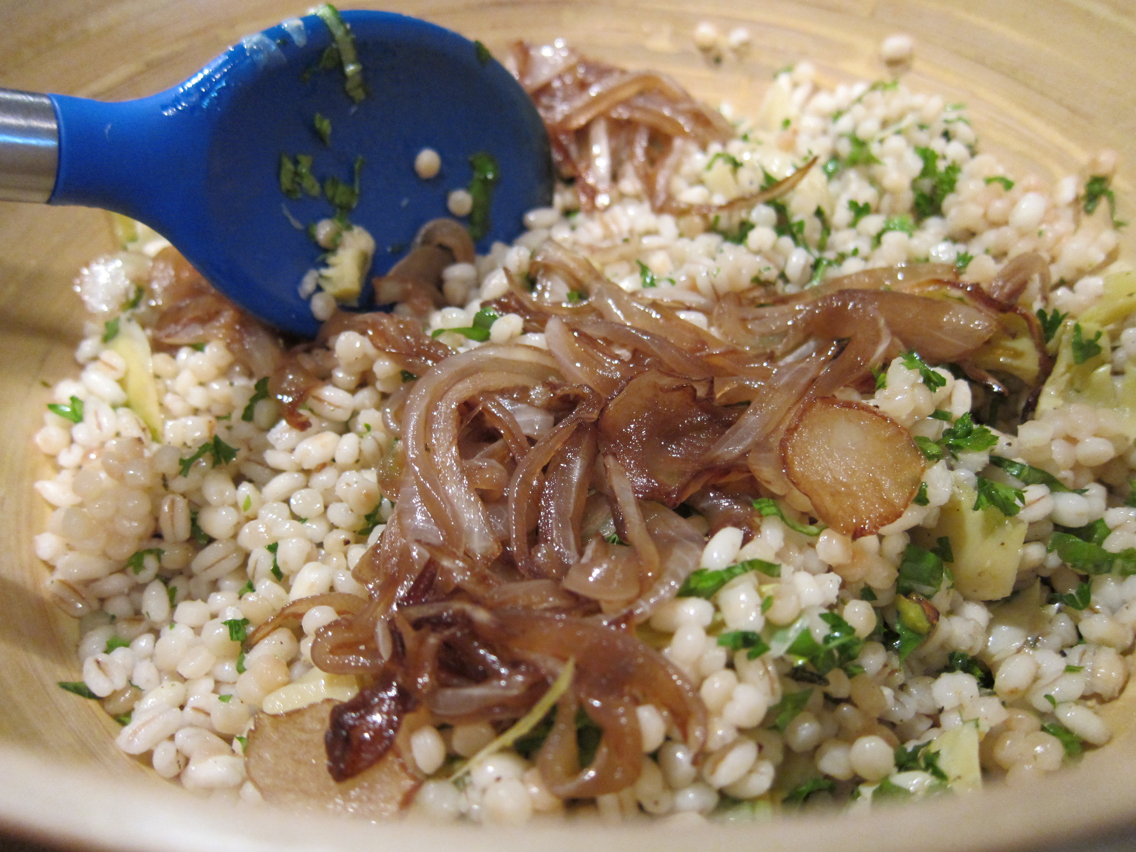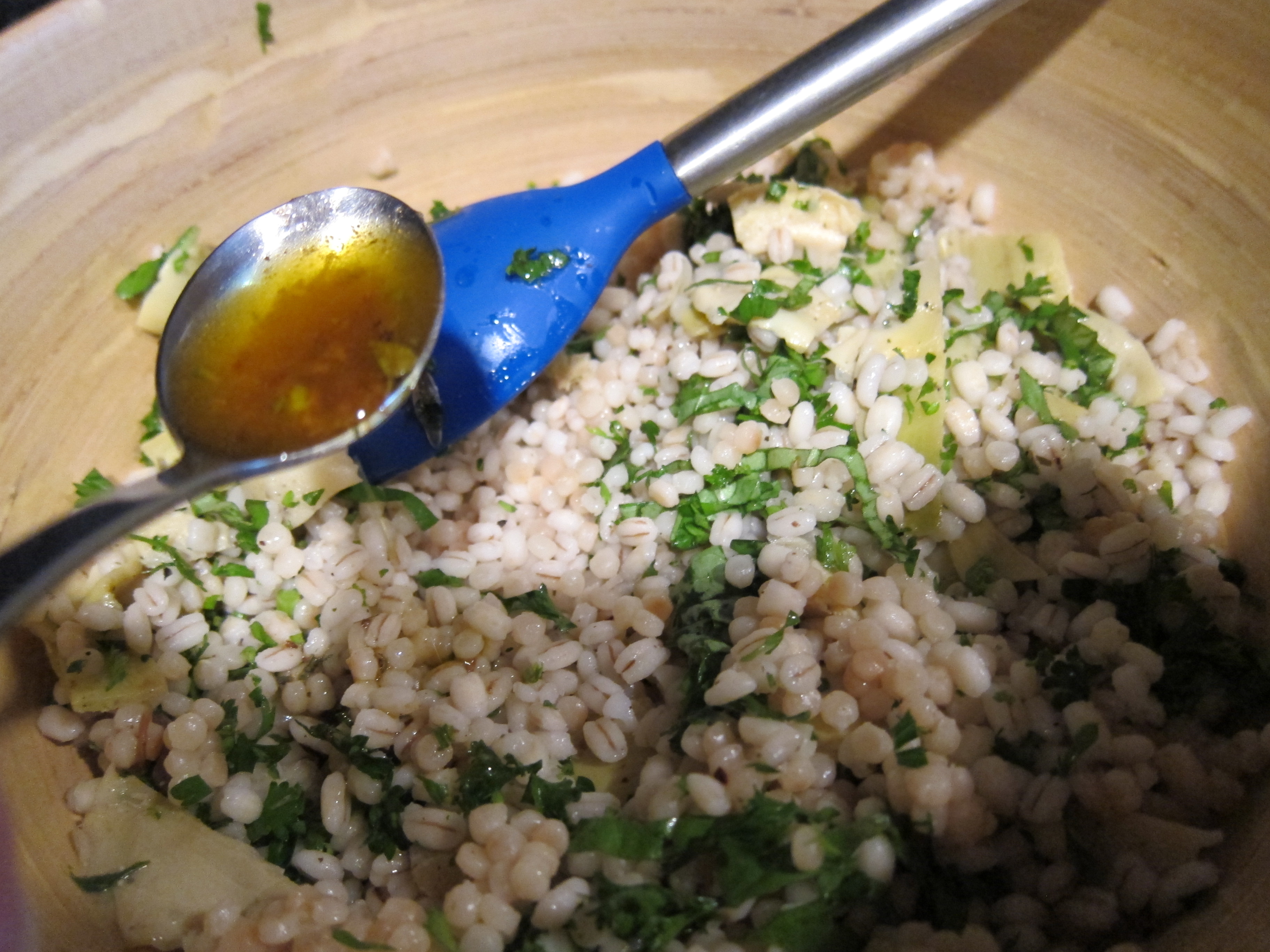 Add it to the couscous and barley along with all the other fresh herbs and artichokes.