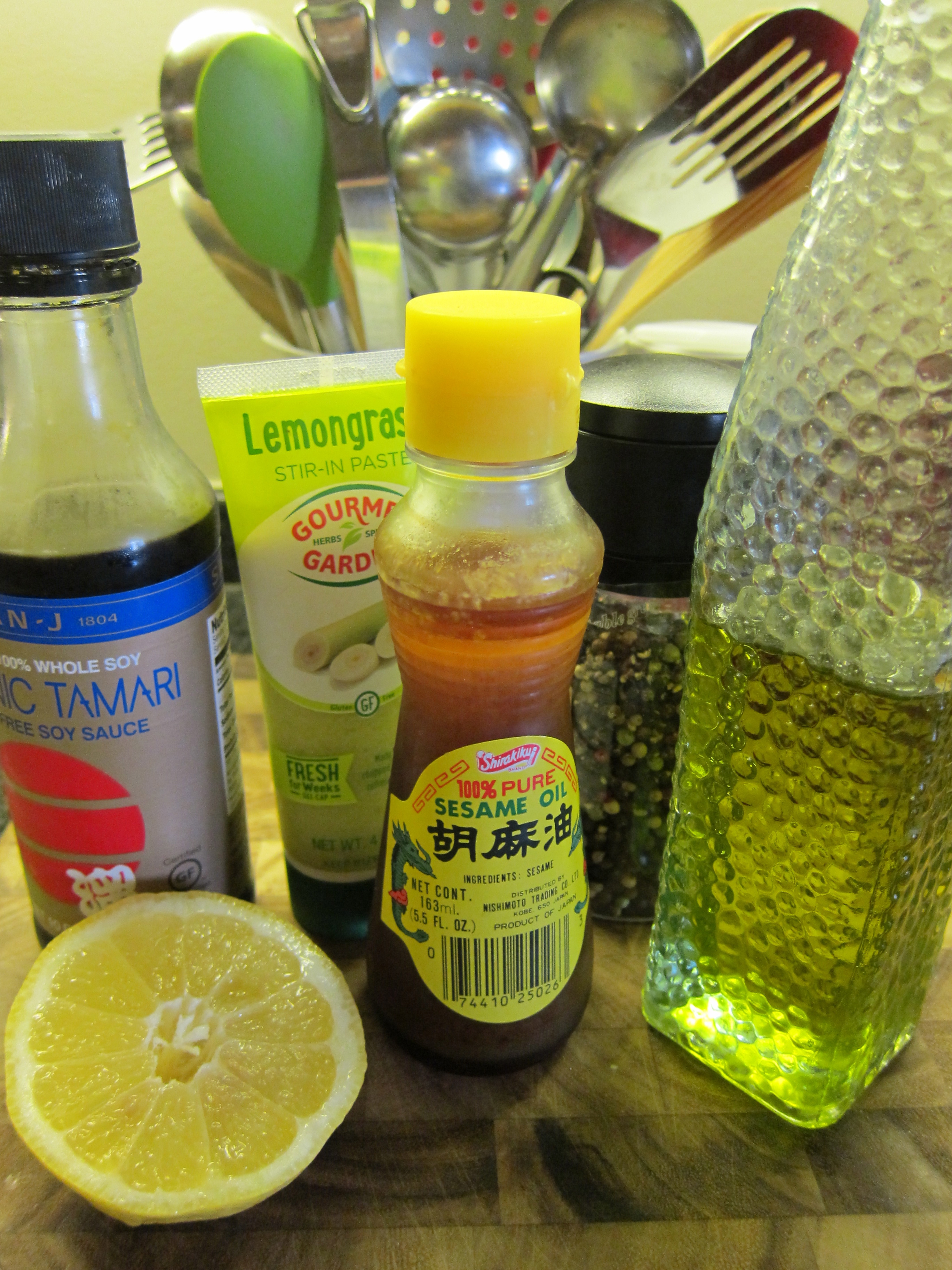 Lemongrass – I took the easy way out by added 1/2 tsp of lemongrass paste which is available in a tube at our grocery store. If using fresh, infuse the dressing with it and remove before serving. Or just add fresh lime or lemon zest.