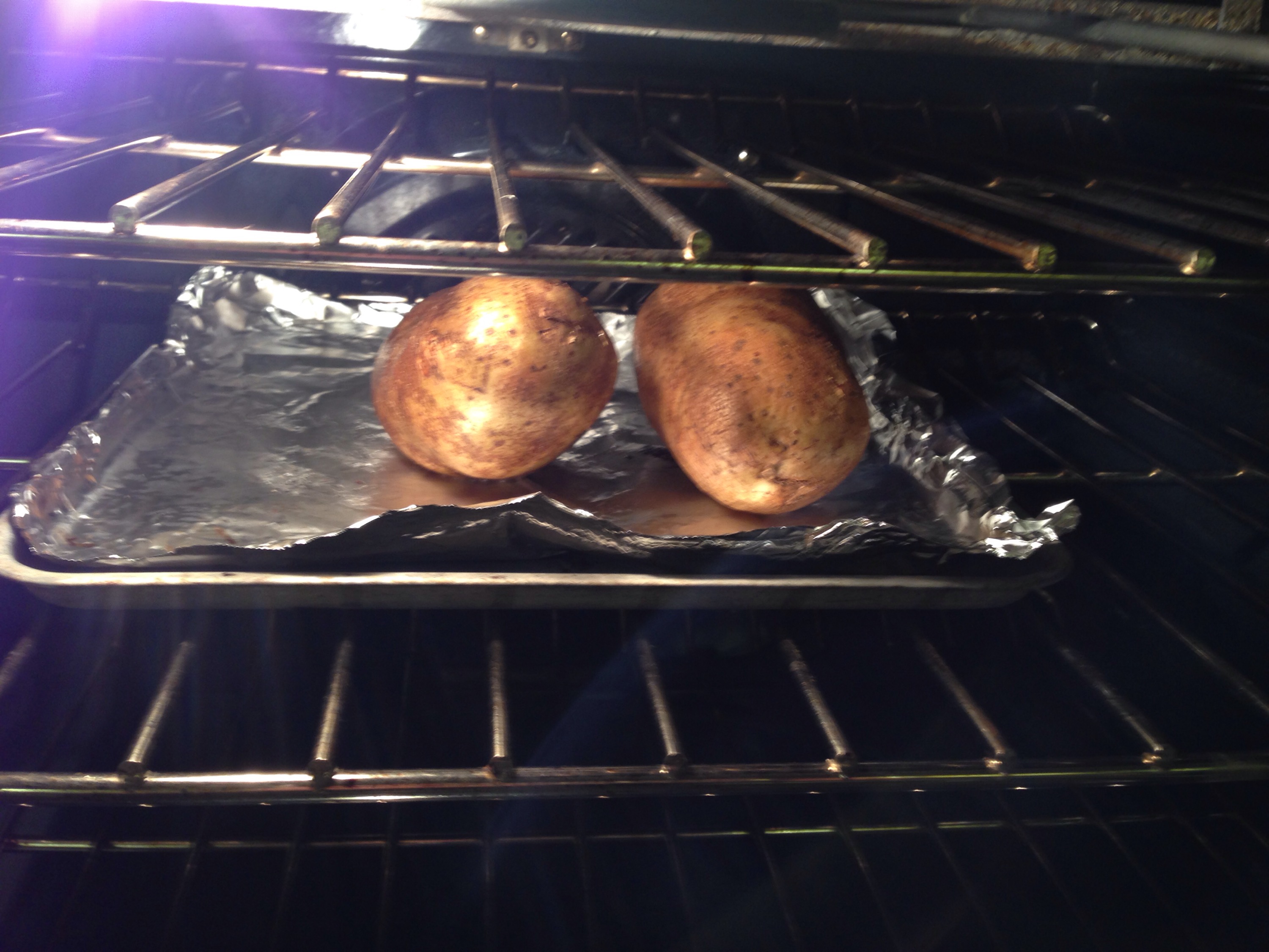 - Rub canola or vegetable oil over potatoes. Pop inside the oven and bake for atleast an hour.