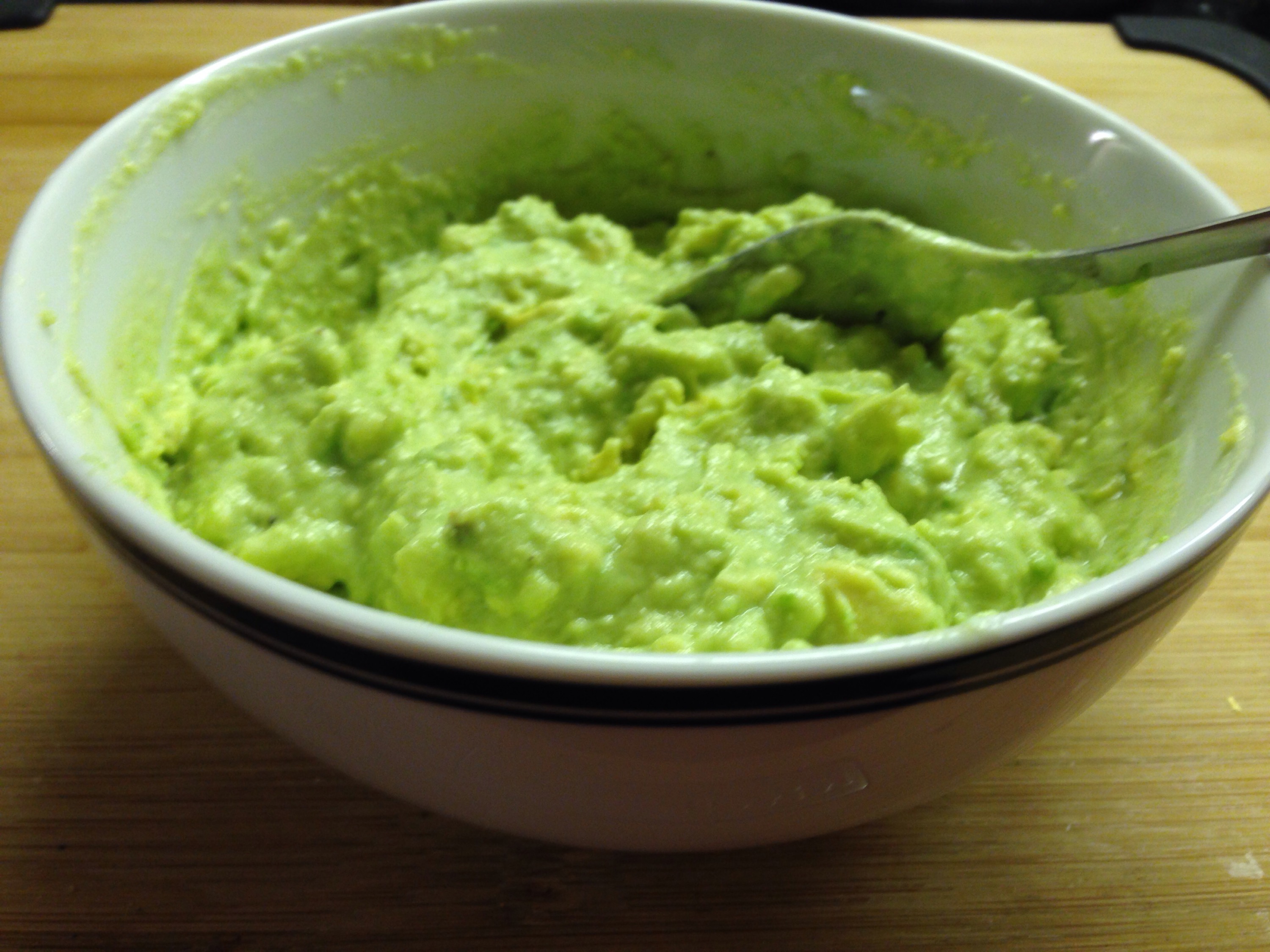 For the creamy avocado- Run a knife along the centre of the avocado lengthwise, twist it open. Remove the pit. Scoop out the soft flesh in a bowl. Mash with a fork. Add yoghurt and little salt and a a tablespoon of lemon juice. Mix well till it is smooth and creamy. Set aside.