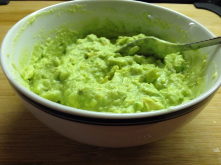Put spoonfuls of the avocado dip in the salad. It’s ready to be served!