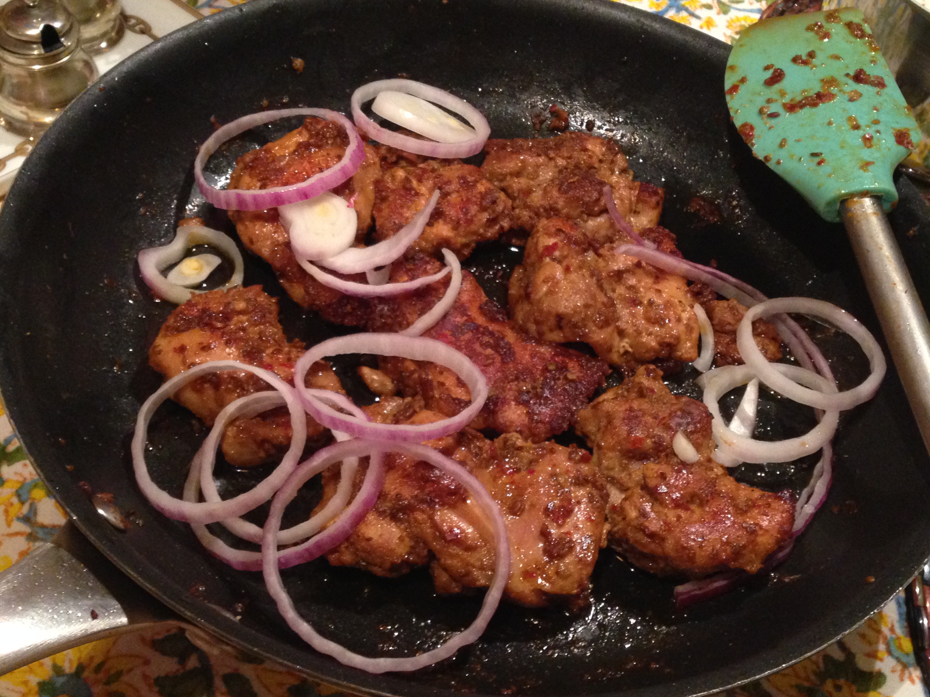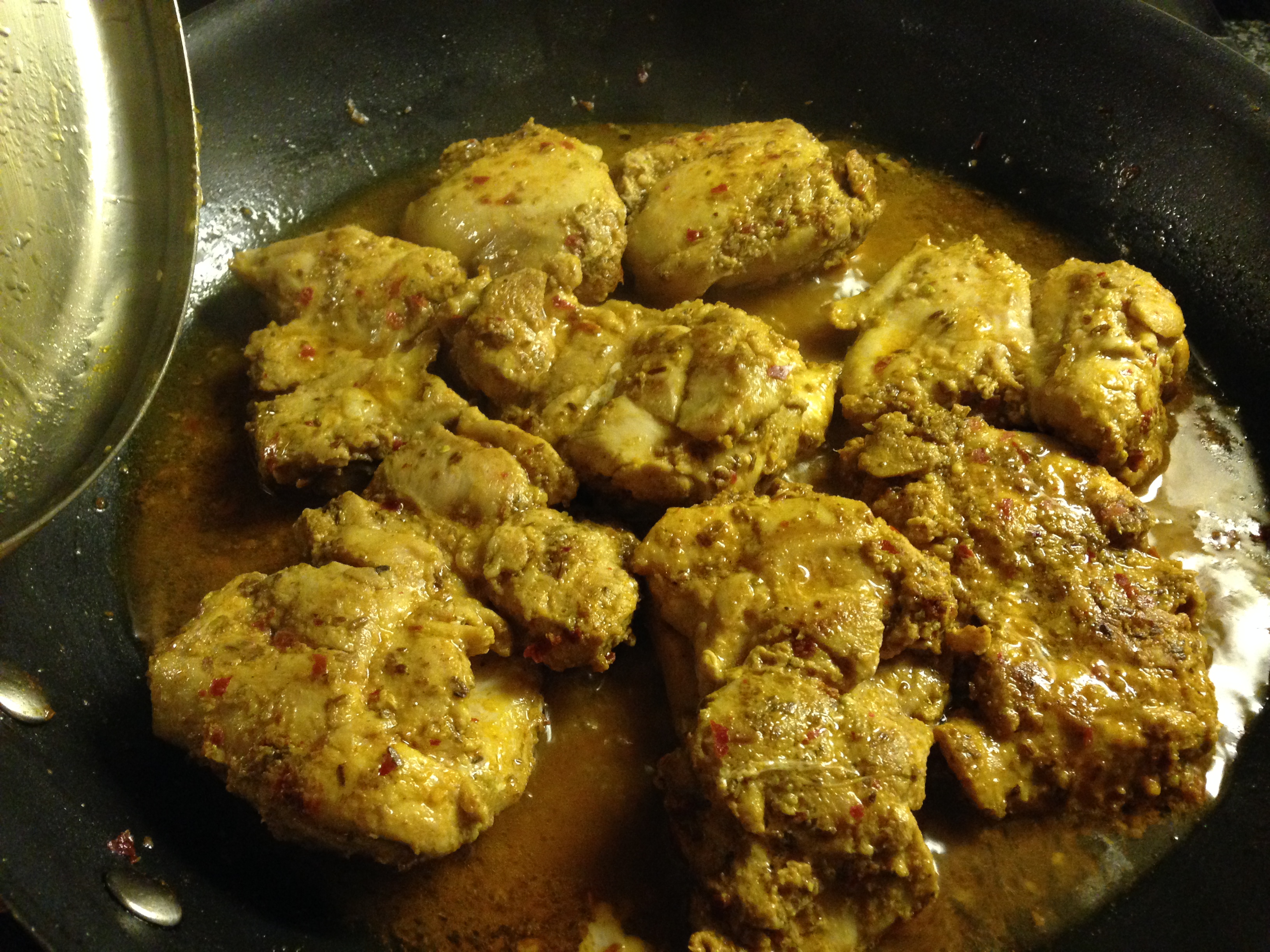 Or else, fry for another 5 minutes or so on medium heat till juices dry out and the chicken is brown and grilled dry.