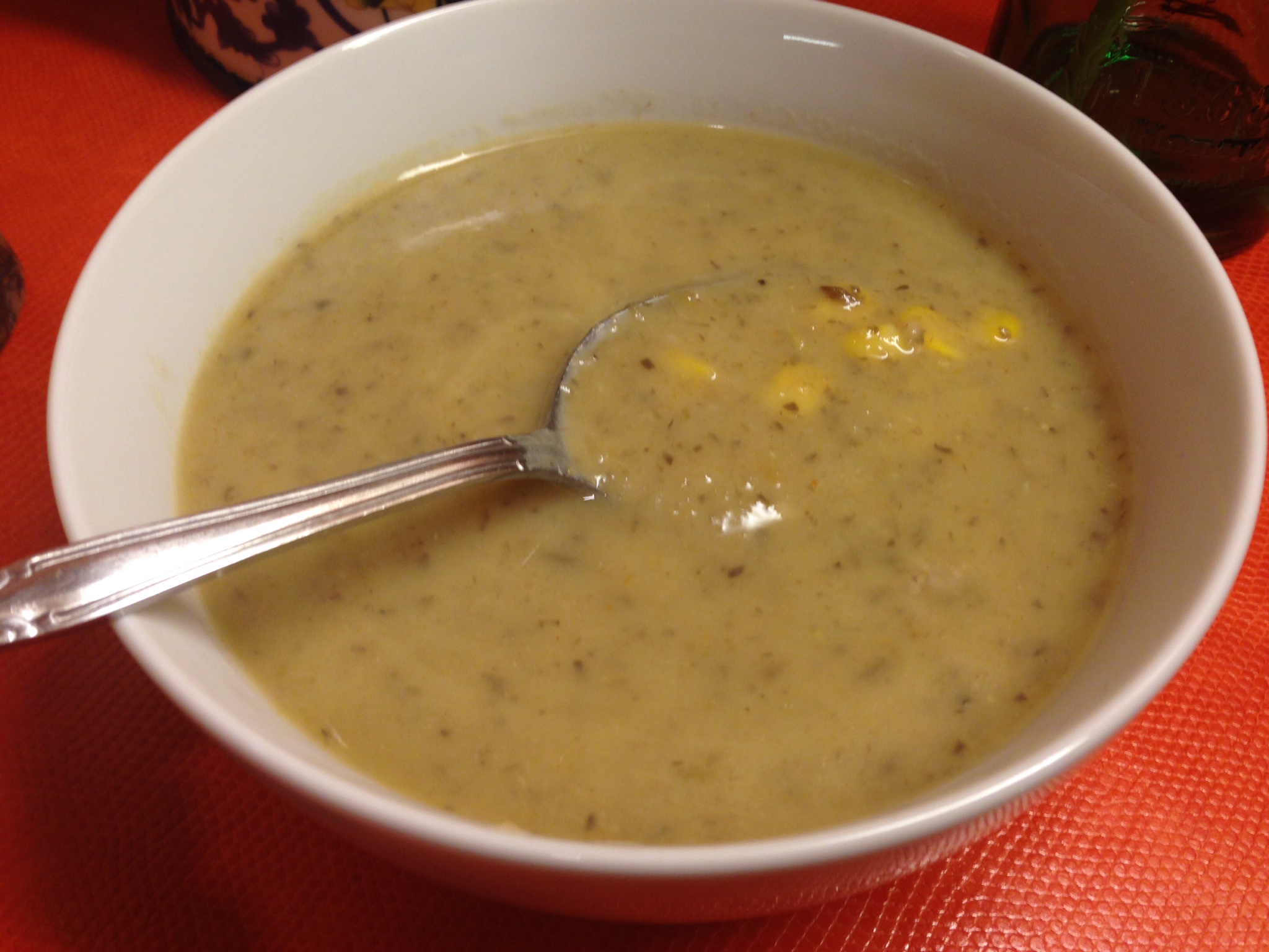 Simple, nutritious, hearty and very tasty. My secret ingredient which adds that extra body and nutty flavor is good ‘ol OATS! Yes! Store bought rolled oats, roasted in a teeny bit of butter, along with all the veggies, makes this soup ultra nutritious and at the same time downright delicious. The usual vegetables one would find in their refrigerators, maybe just one exception- bottle gourd. Bottle gourd, or lauki aka ghia in Hindi, is considered a very boring vegetable in our household. I usually make it as a stir fry with Indian spices, but my family, especially my 9-year old simply loathes it 😦 It’s placid and dull tasting, but good for you, as all veggies are. In case, one can’t get their hands on this bright green vegetable, certainly substitute with squash or frankly any vegetable if your choice, versatility is the name of the game. And in case you can’t get your kids to eat oats, which is in my case, this is a perfect way to disguise them. All put together in a soup pot or Dutch oven and puréed together, with a handful of yellow corn and a dollop of fresh cream added toward the end. Let me tell you, your family would be left guessing as to what went inside the soup!
