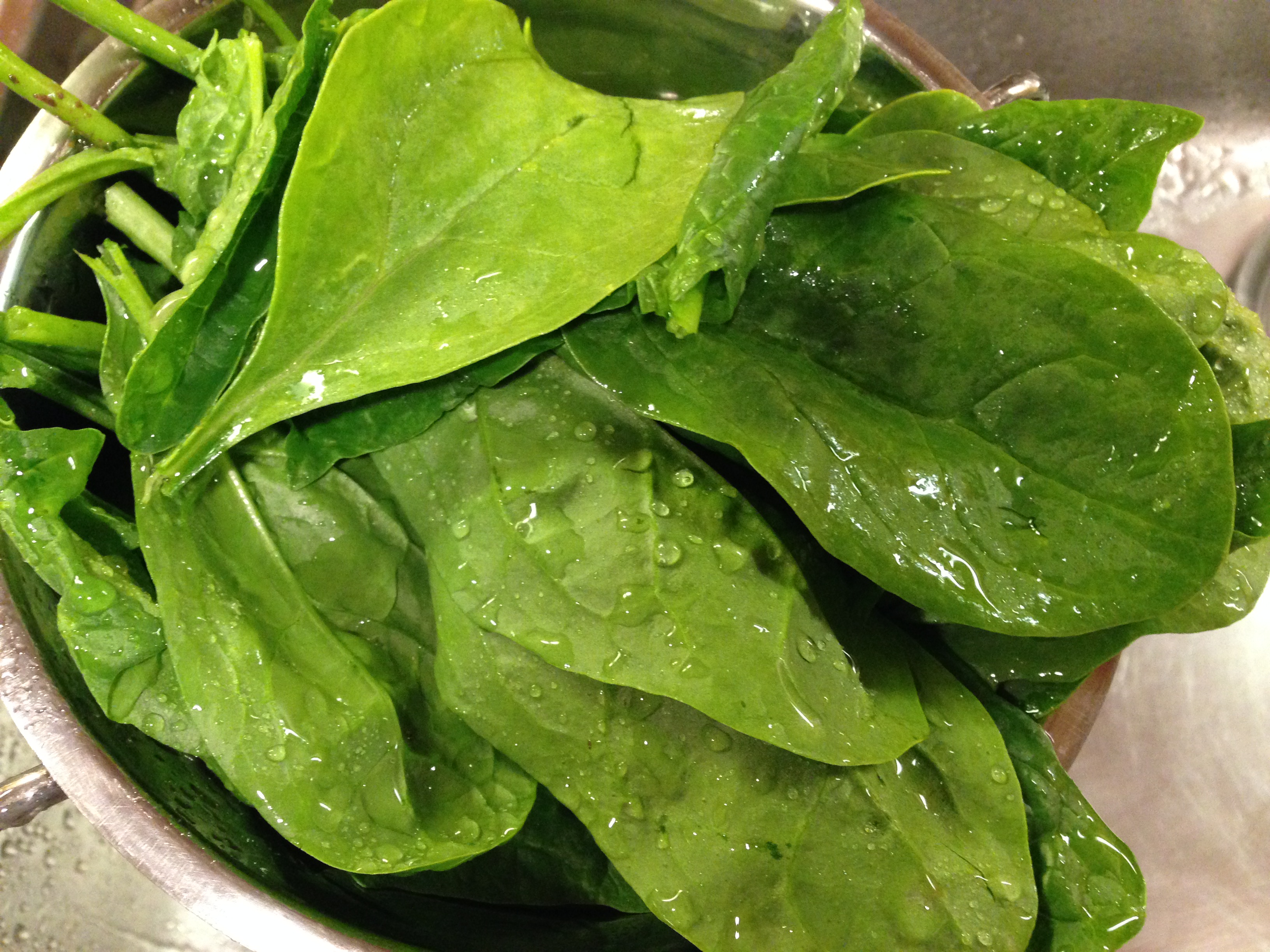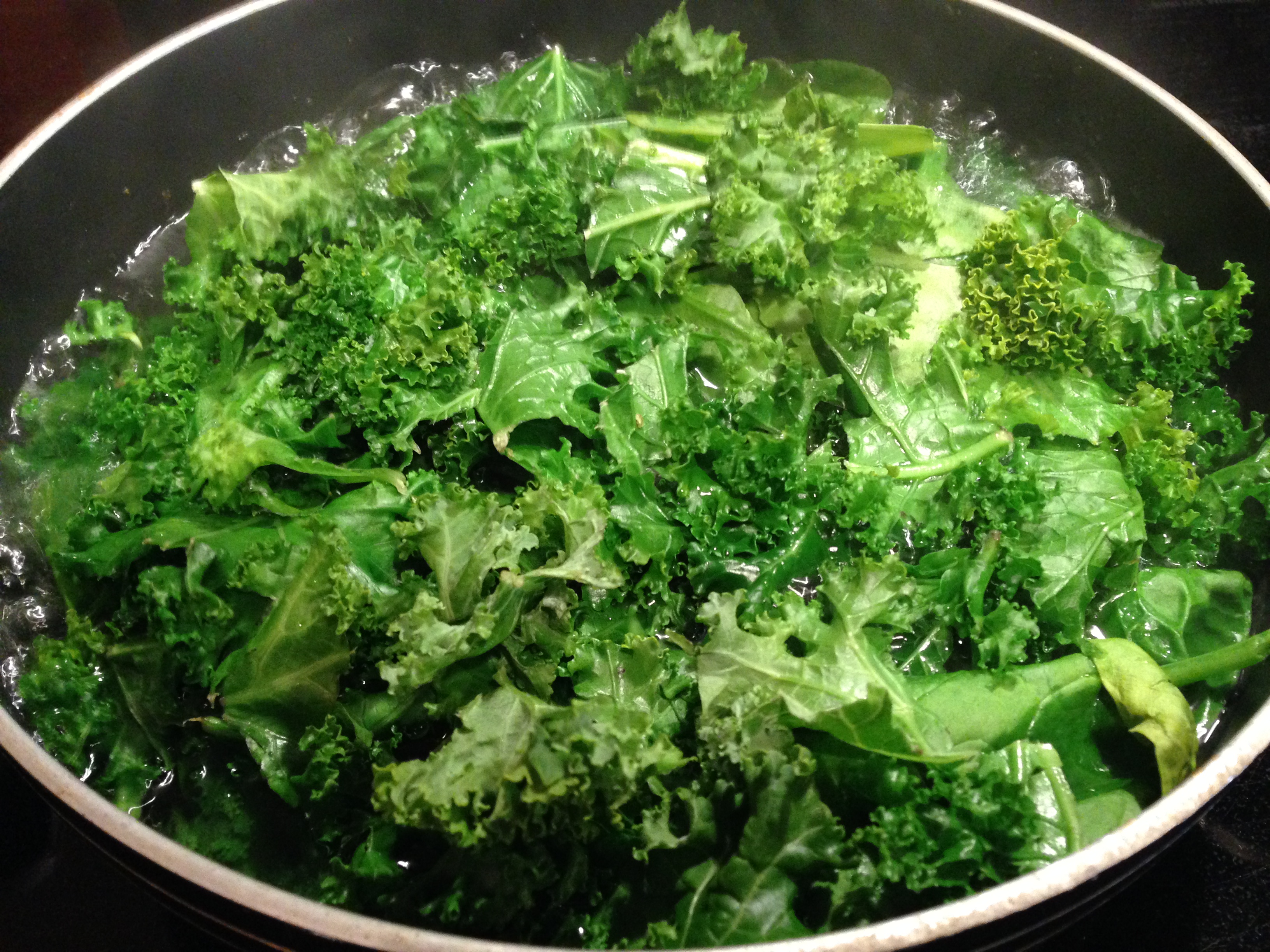 Blanch the spinach and kale. Basically, just add the leaves to boiling water for a minute.
