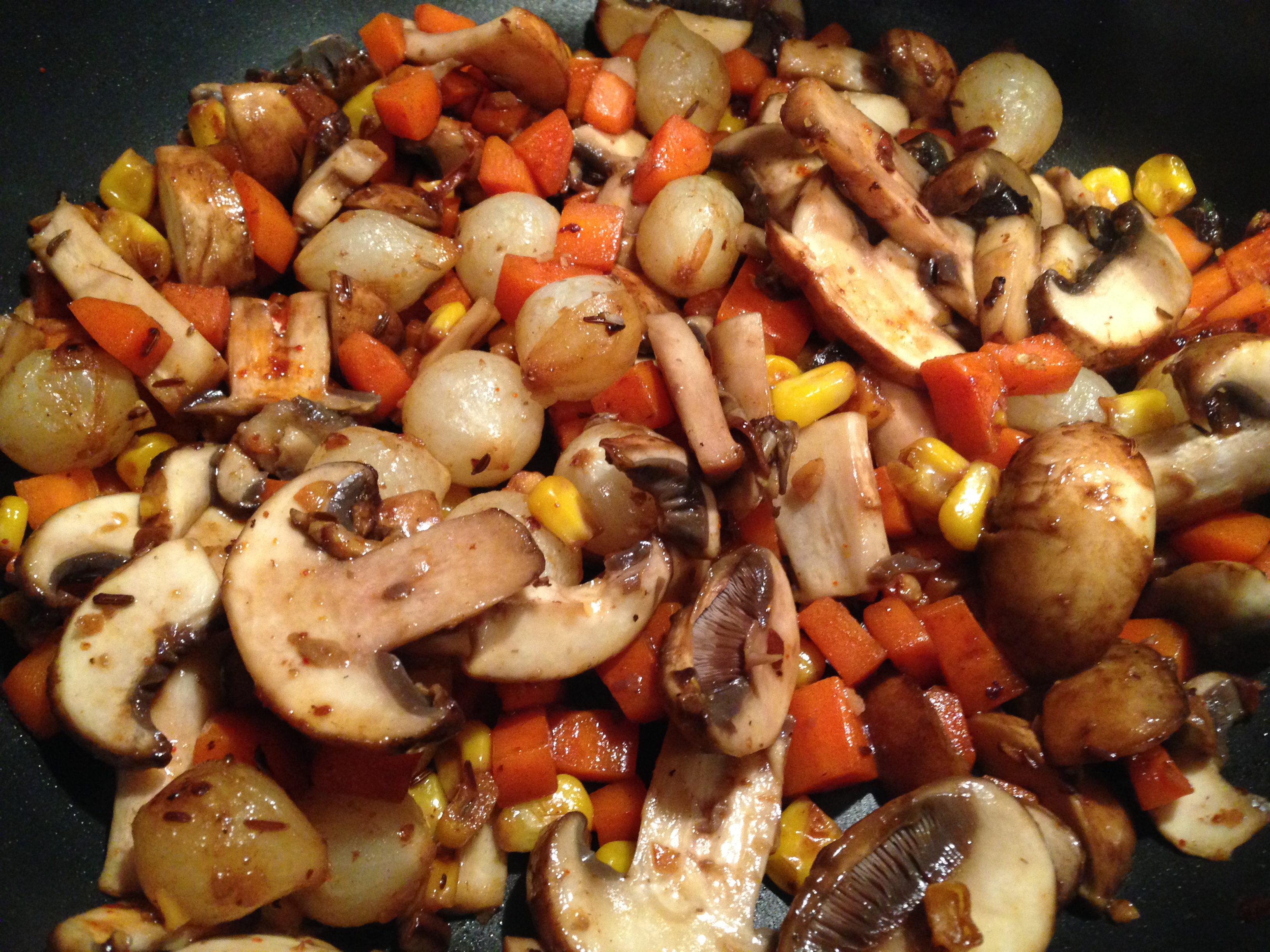 Add the onions, carrots and corn. Sauté for 3-4 minutes.