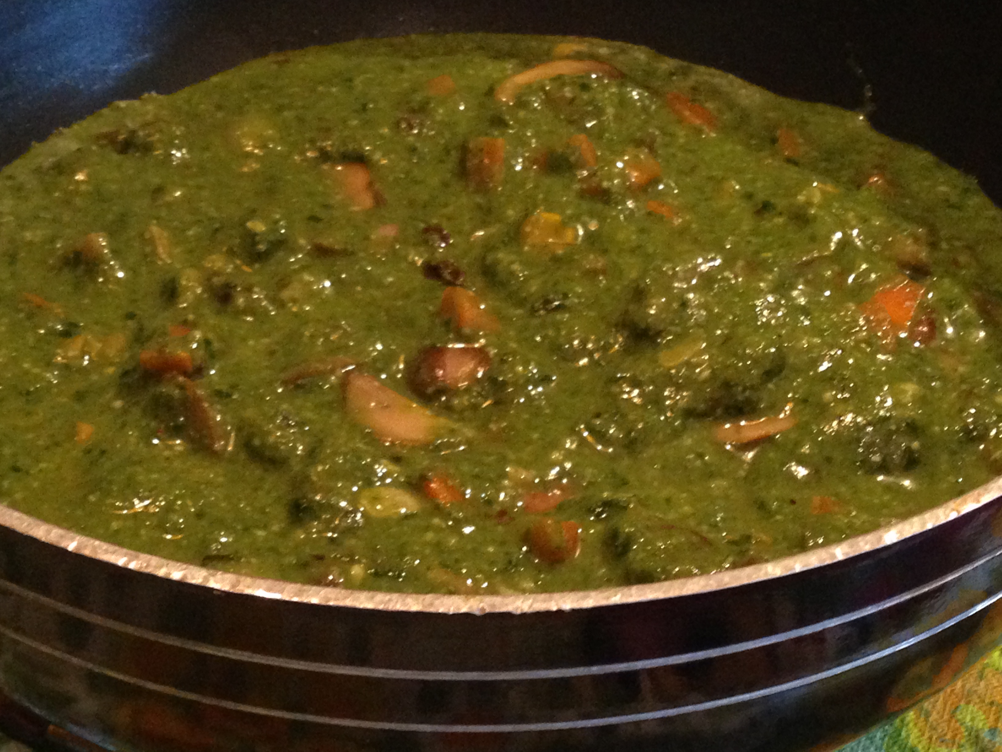A sumptious, vegetarian creation with hearty and nutritious vegetables and greens, and the goodness of almonds and cardamon, certainly gave a big boost to my dining table tonight 🙂