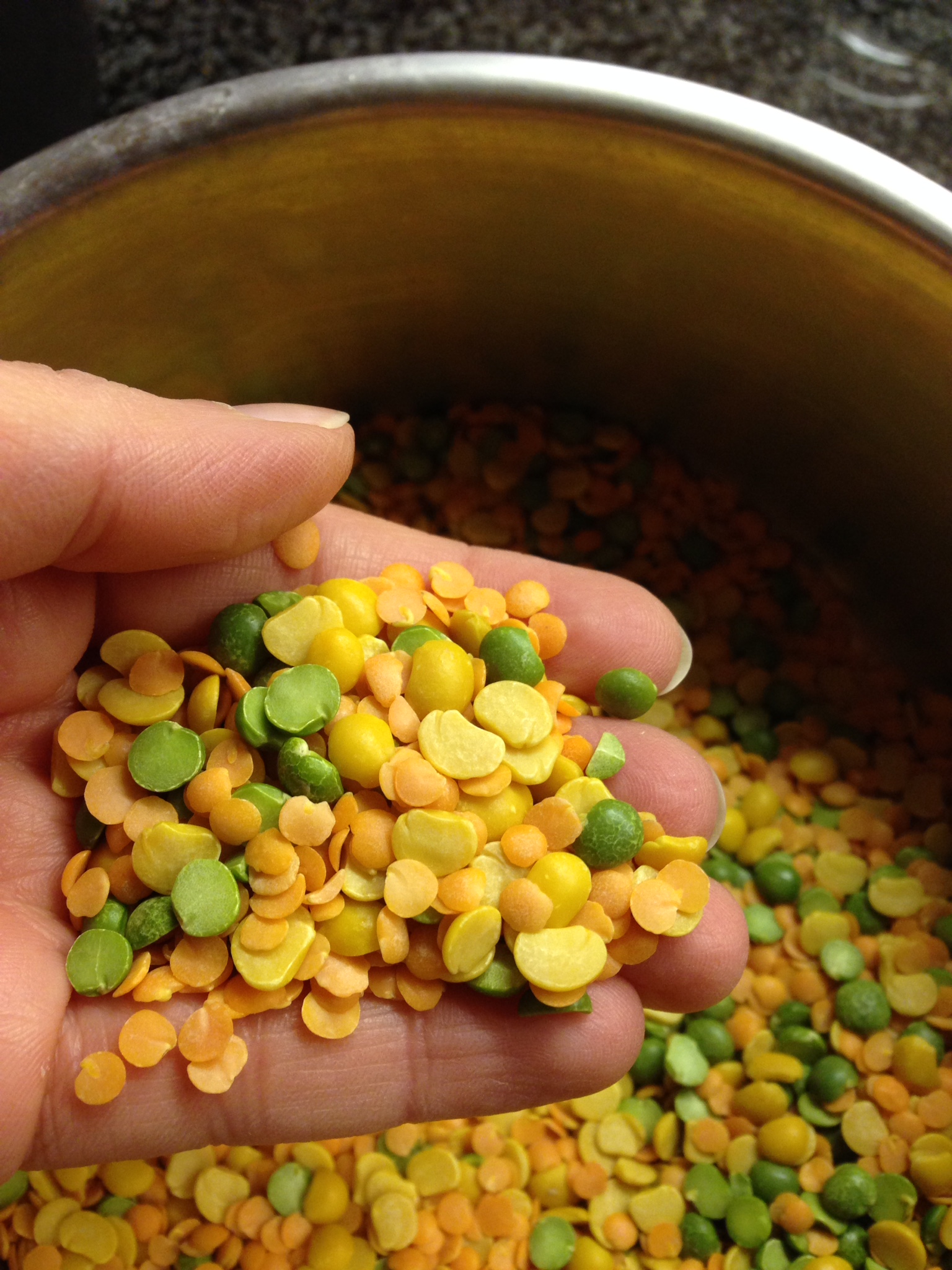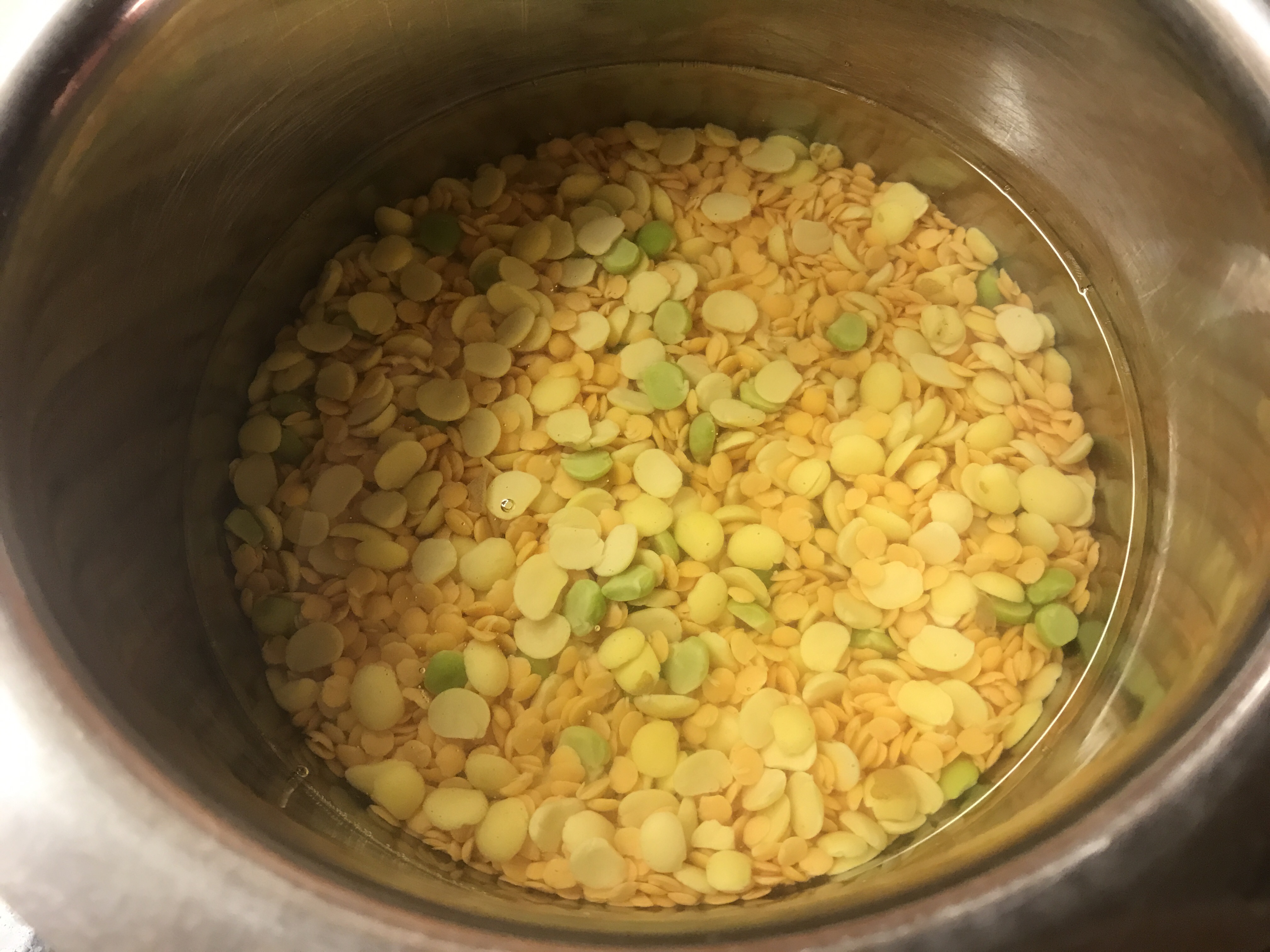 In my recipe, I have used a mix of dried red lentils, yellow and green split peas. Lentils are naturally gluten-free. Daal is a staple in most Indian homes, such as ours, eaten with rice, Indian bread or roti and a side of meat or vegetables. That’s generally the 3 course kind of meal we eat for dinner on most days. Lentils are low in calories and packed with nutrients, dietary fiber, vitamins and protein. We have grown up eating lentils, a variety of them, cooked in different ways, ending up as delicious daals on our dining table.