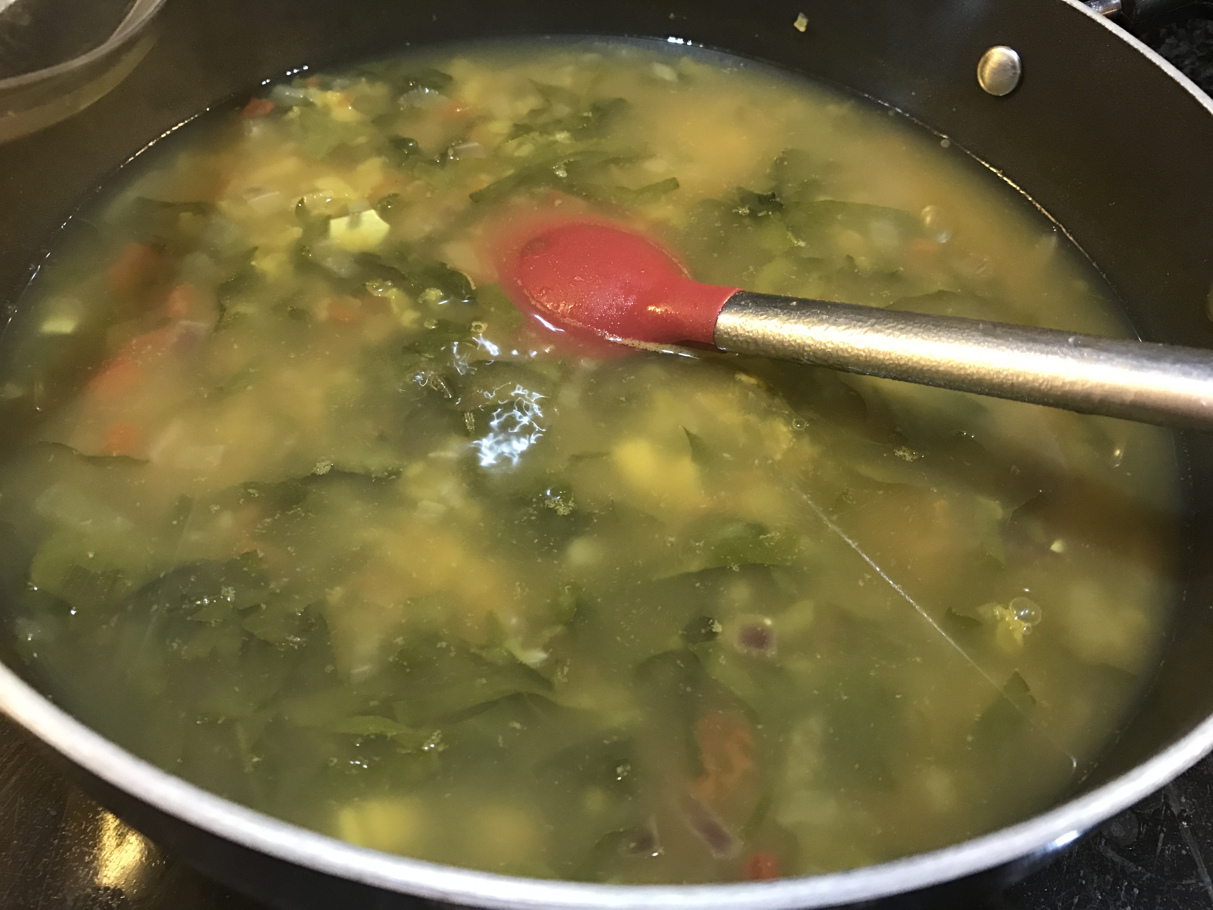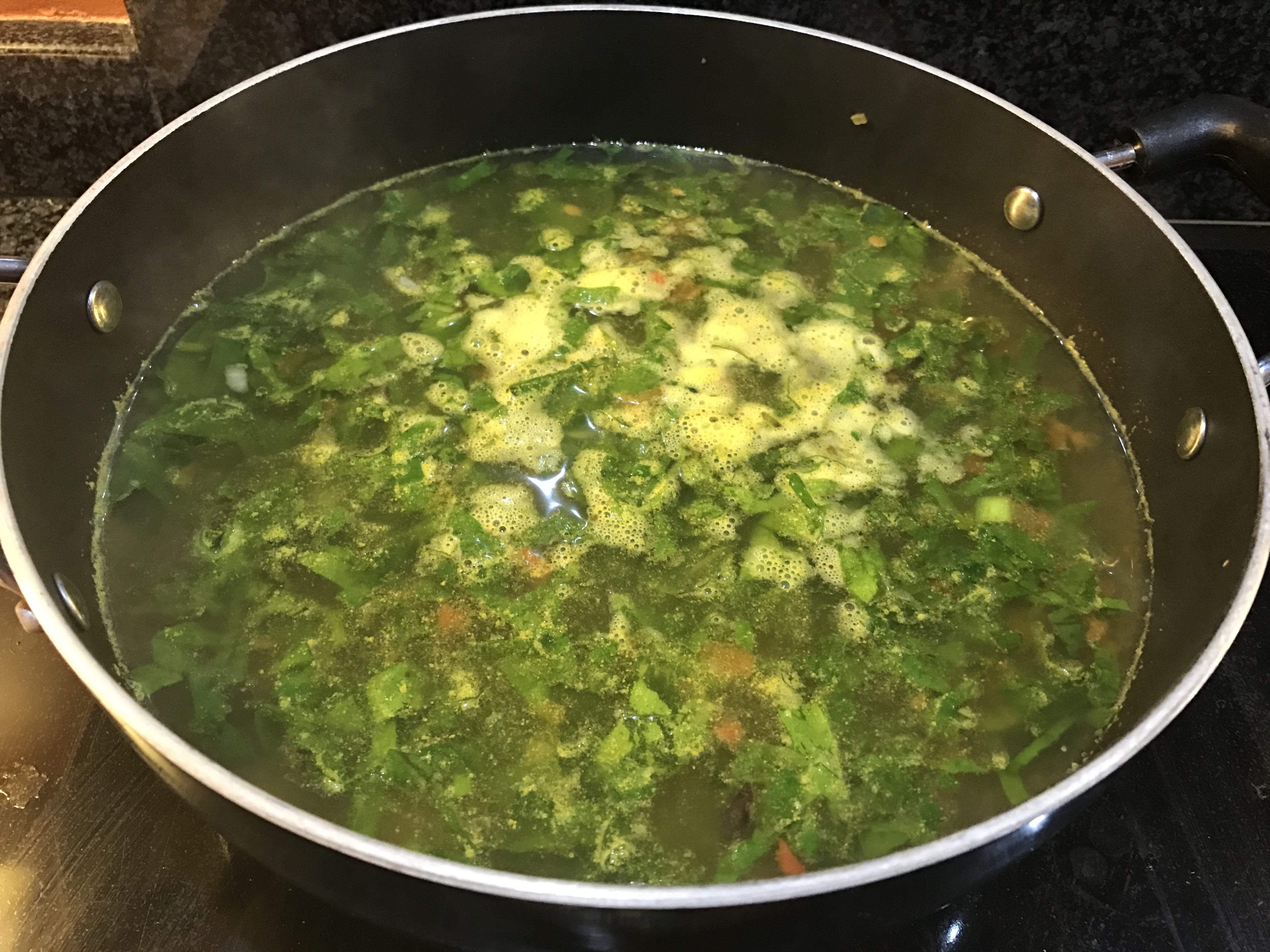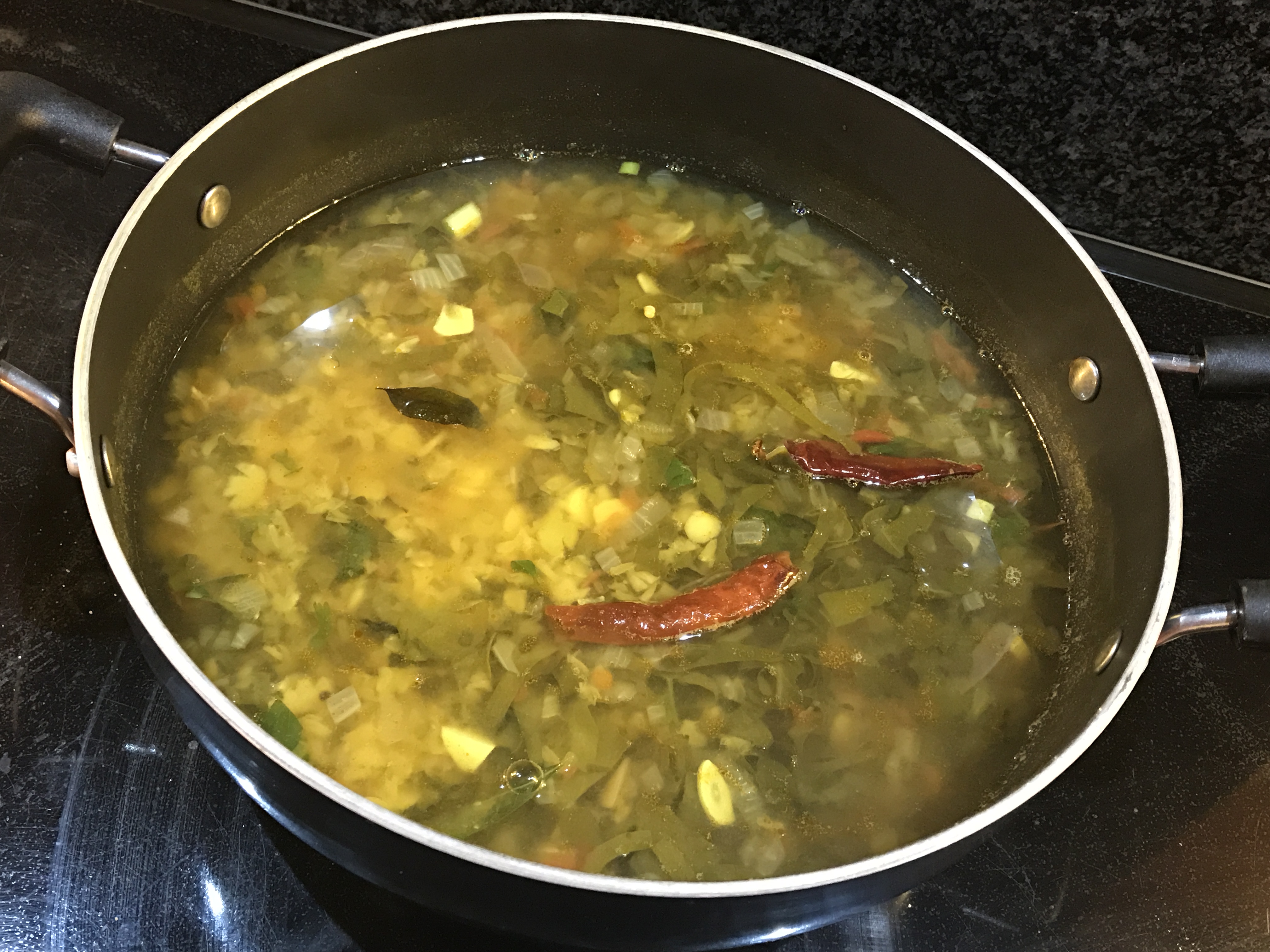 Mix well. Add sufficient water, to cover at least an inch above the lentil mixture. If you would like it lighter and on the watery side, add extra water.