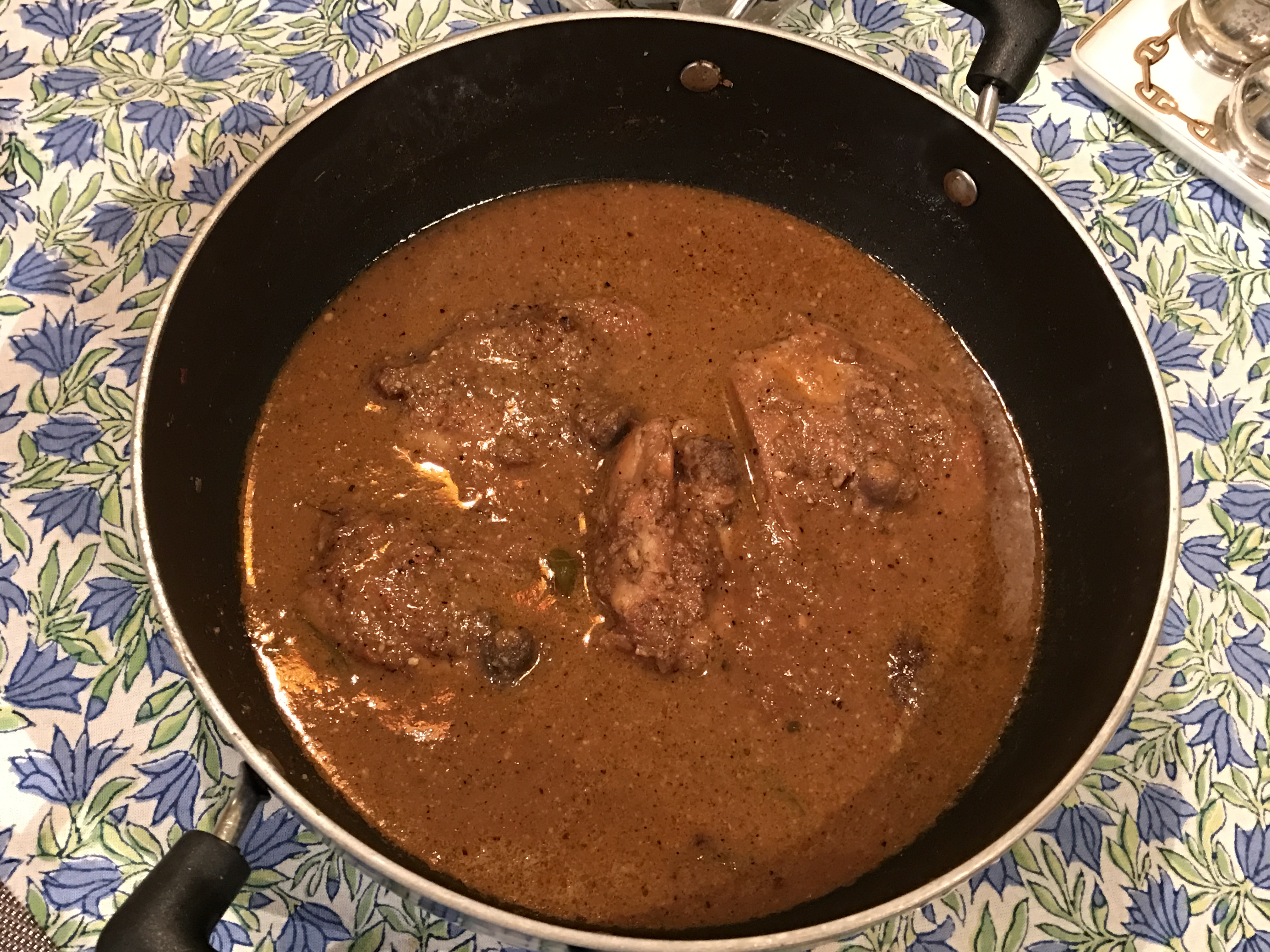 On a recent visit to the restaurant Dosa, here, in San Francisco, I ate Tamil lamb curry. I simple fell in love with the curry, rich and infused with spices and coconut. I definitely tasted ground fennel seeds, which seemed predominant in the spice mix. I decide to replicate a version of the dish in my kitchen, for dinner, using chicken. Of course, I can never get to the exact recipe and delicious taste of the curry at Dosa. But I’m impressed with my version too, it turned out very well, especially with my twist of adding almonds. Rich and flavorful, with the fresh spices (including my precious cinnamon from my trip to Sri Lanka :-)) and coconut, used extensively in coastal Indian cuisine, this curry definitely is worth a try. And I do intend to make it again very soon…