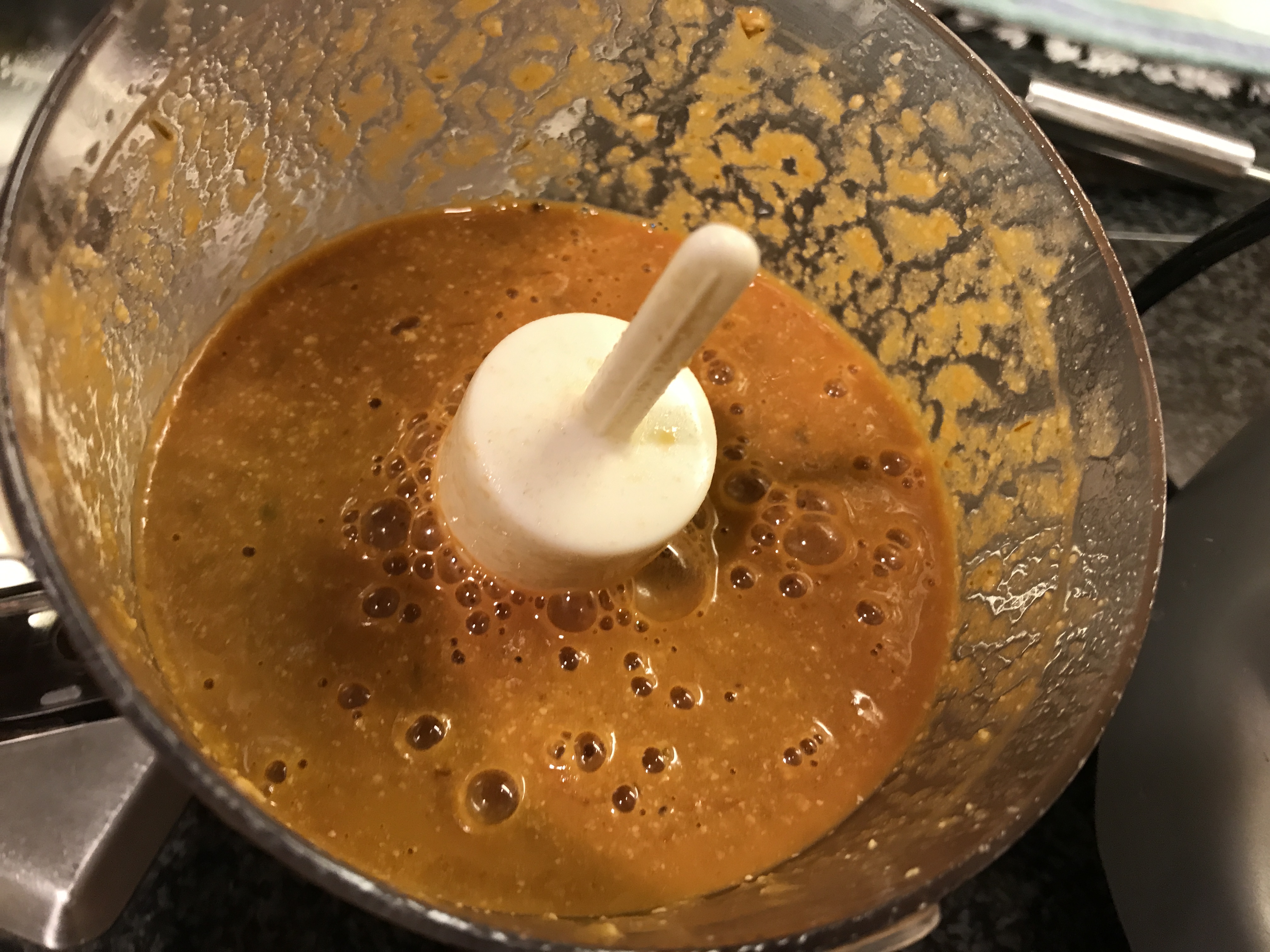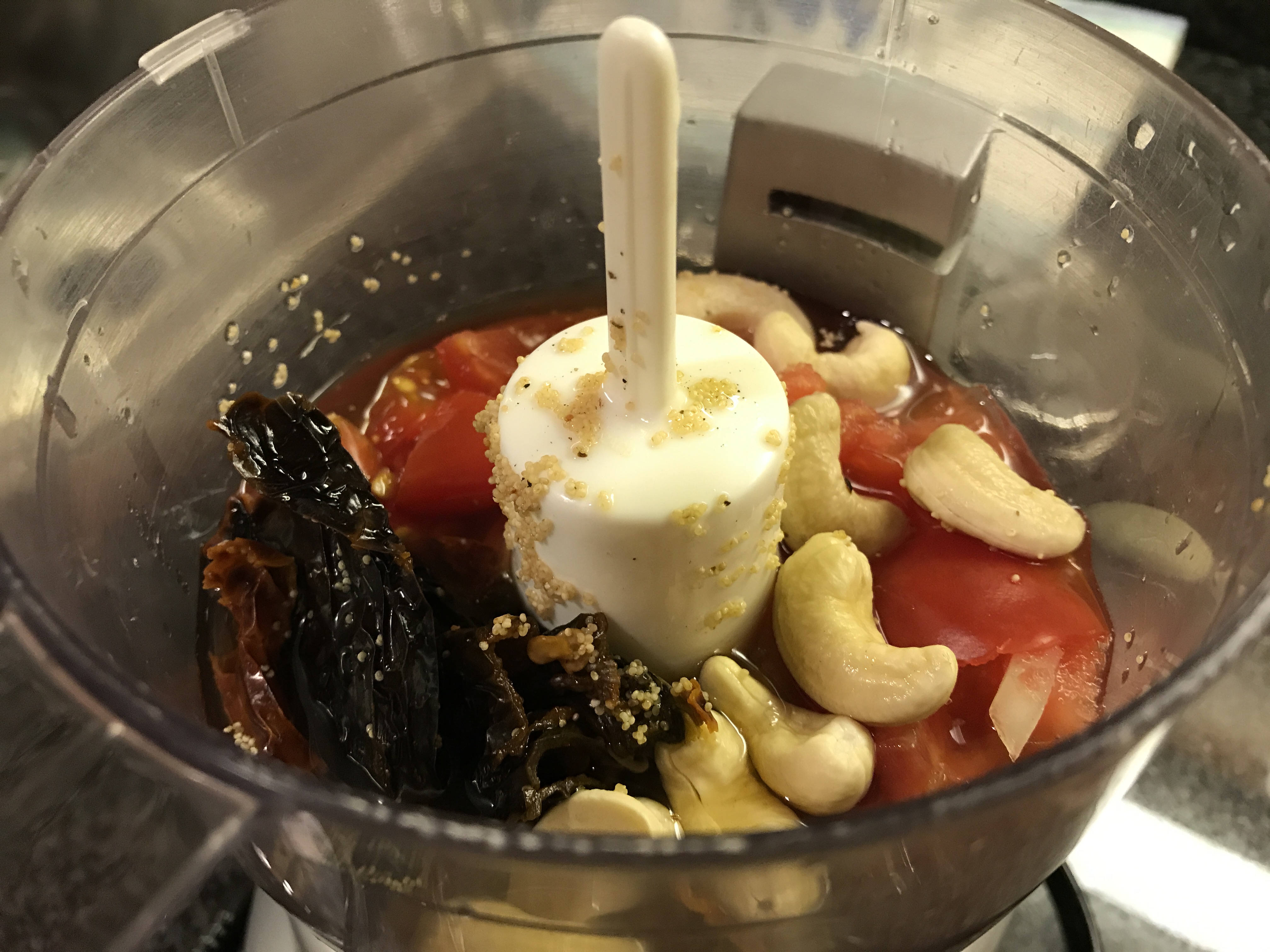 Soak cashew nuts in warm water, along with dried red chillies and poppy seeds. In a food processor, add the mixture along with tomatoes. Blend to a purée.