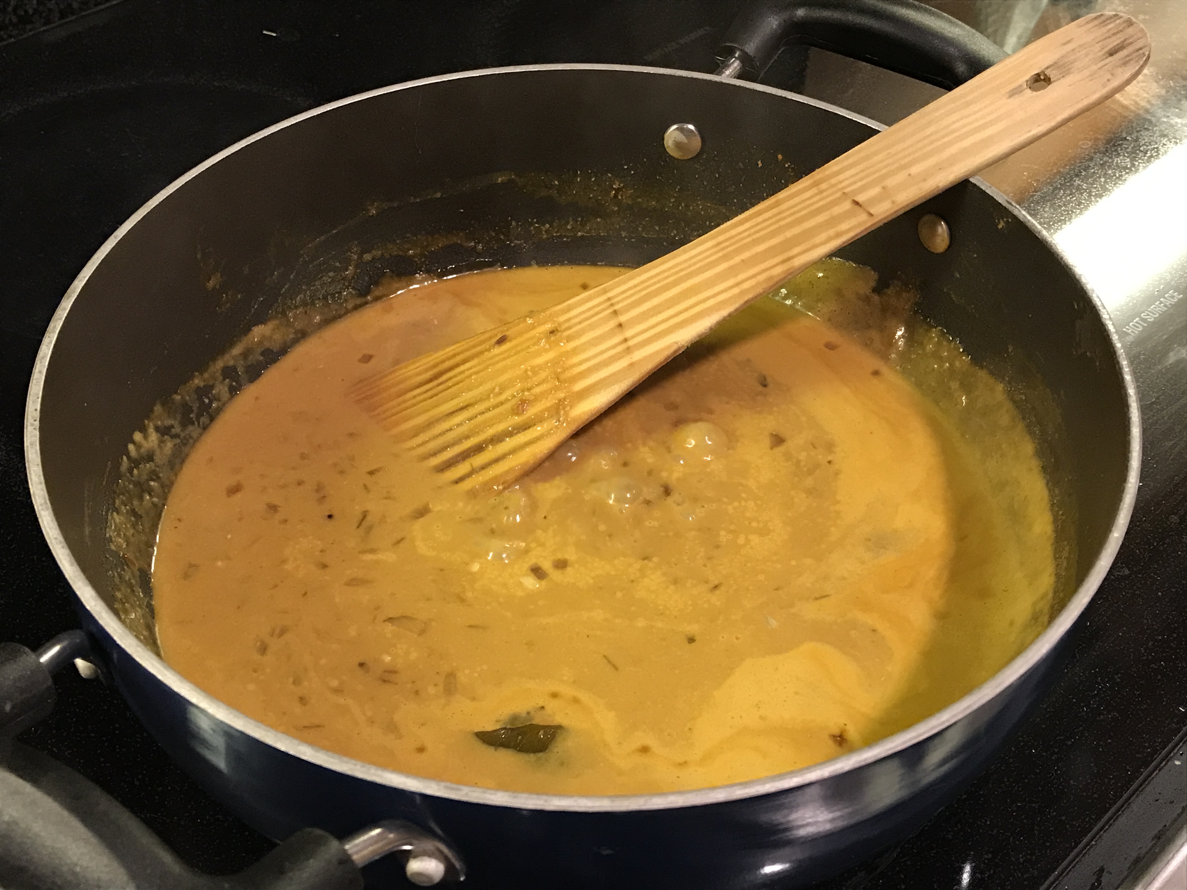 Mix 1/2 cup coconut milk with 1/2 cup water and add to the curry.