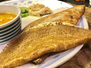 Dosa, a household favorite, and the popularity of these South Indian crepes seems to be growing. After all, we have an extremely sought-after restaurant here in San Francisco, named after it. Rice, lentils and fermentation are the key components in the traditional dosa recipe. It is a staple in many a South Indian homes, and the batter is made from scratch, no short cuts. Though now, to make life easier in the kitchen, dosa batter is readily available everywhere in India, even all the Indian grocery chains, at least here in the Bay Area.