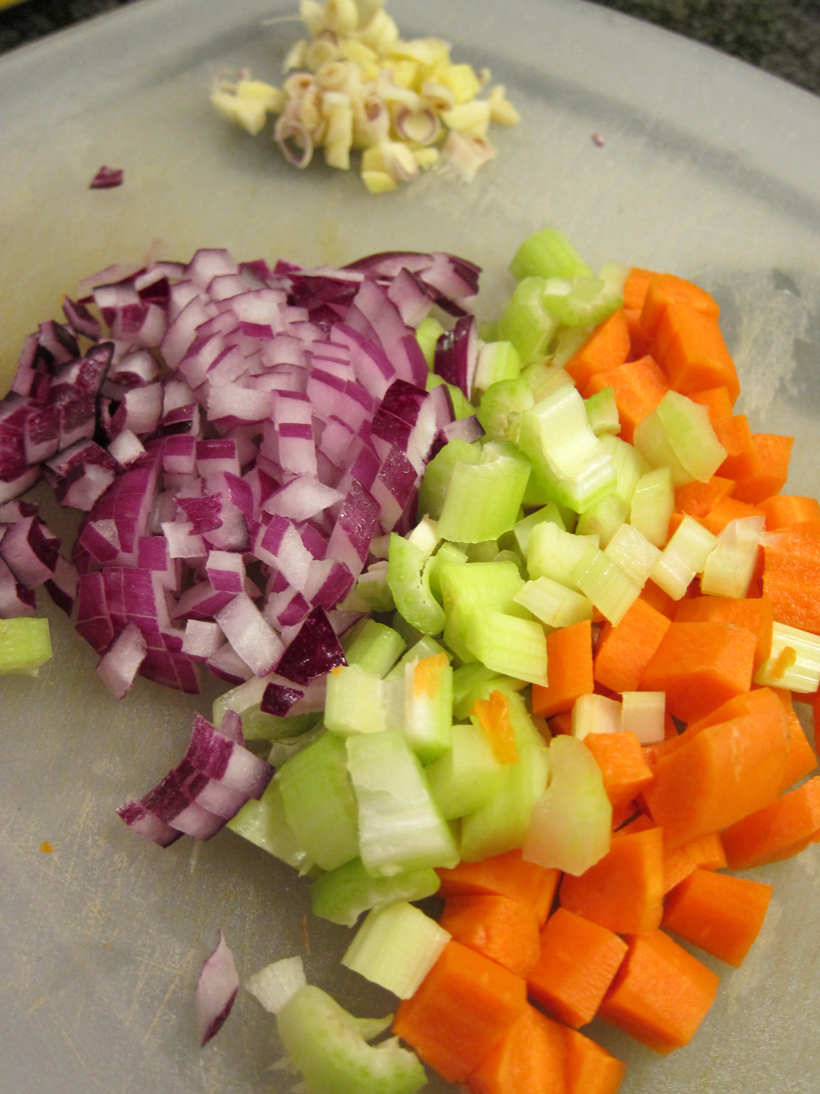 A mix of lentils or dals, with veggies, coconut milk, spices, oats and flaxseeds.
