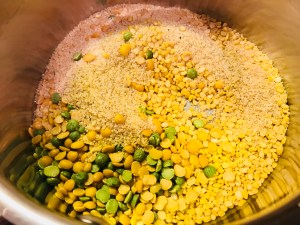 Water – 3 to 4 cups. Can add less water, for a drier khichdi consistency.