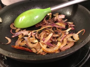 In a separate small fry pan, add a little ghee and sauté-fry the onions till light to golden brown.