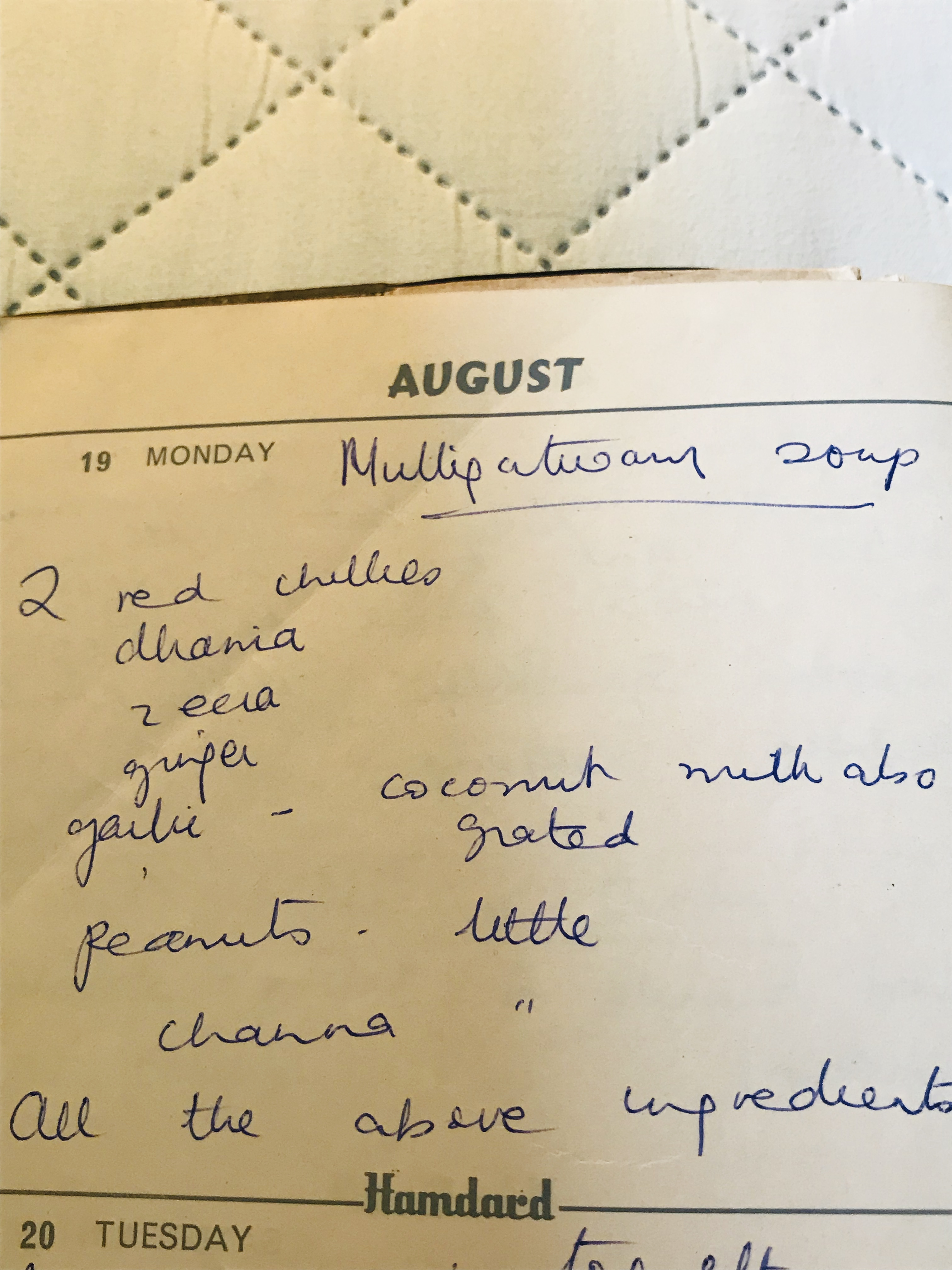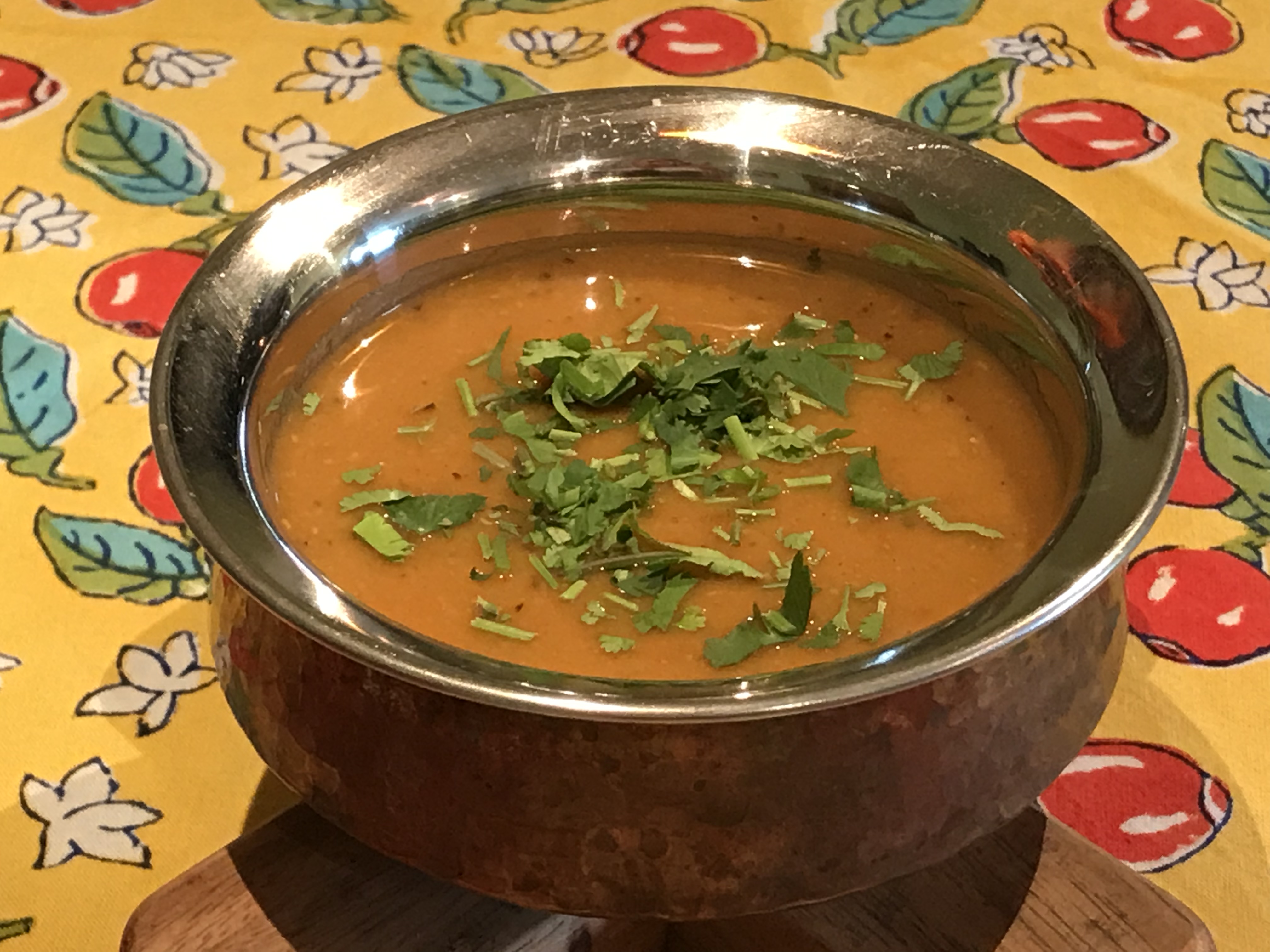 I was leafing through my mom’s old recipe books, one of her older ones, out of the many she has penned over the years. She started it when I was an infant, circa 1974. And over the years, as a toddler, I’ve left my imprints too, in the form of some scribbling and maybe torn pages! I came across her recipe for Mulligatawny soup, simply written, no measurements. She has mastered the original recipe over the years, I think so, since it’s been a favorite soup of the family. I dug out some key ingredients from her recipe and incorporated many new flavours, seasonal vegetables and the ubiquitous lentils or daals we eat practically everyday, in my version.