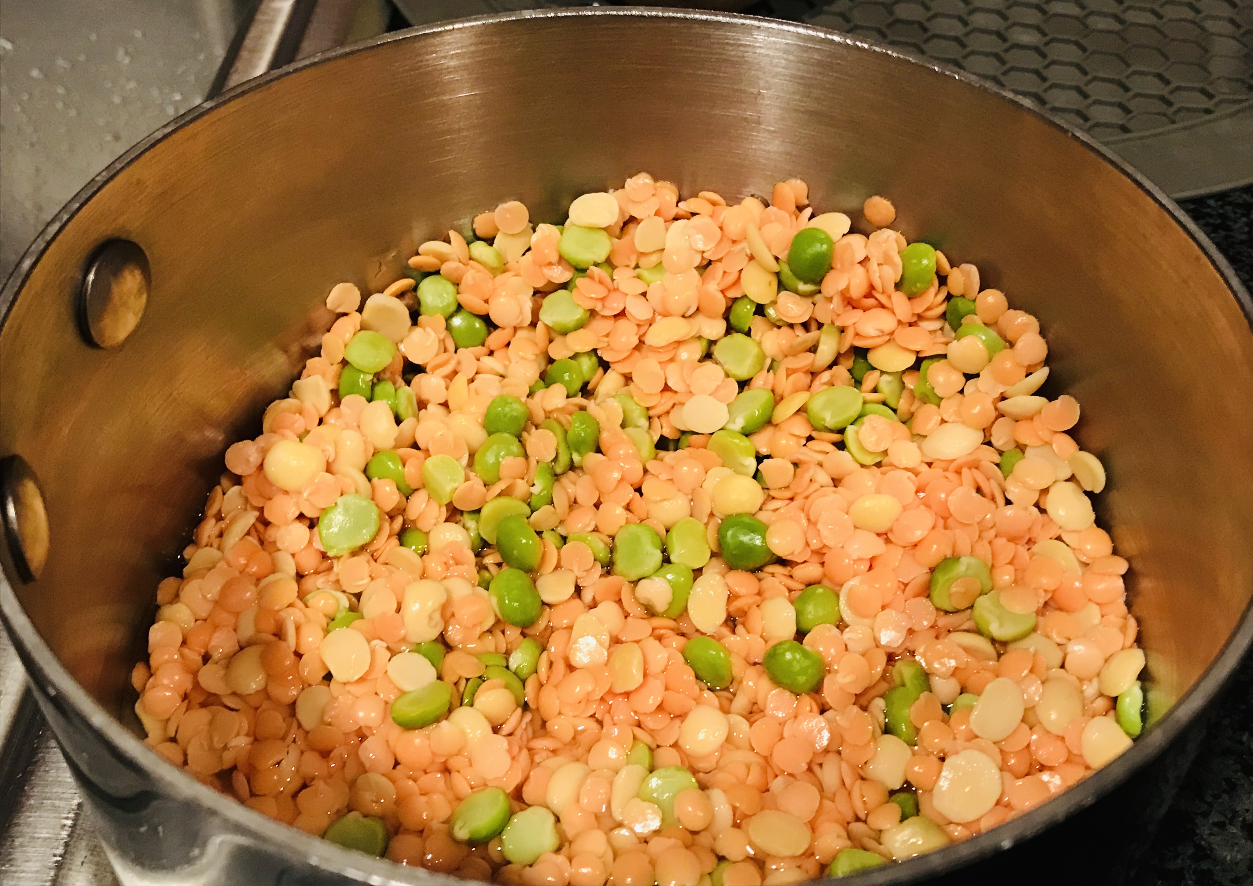 Toor daal (split pigeon peas) – 1/2 cup. I also use the green variety.