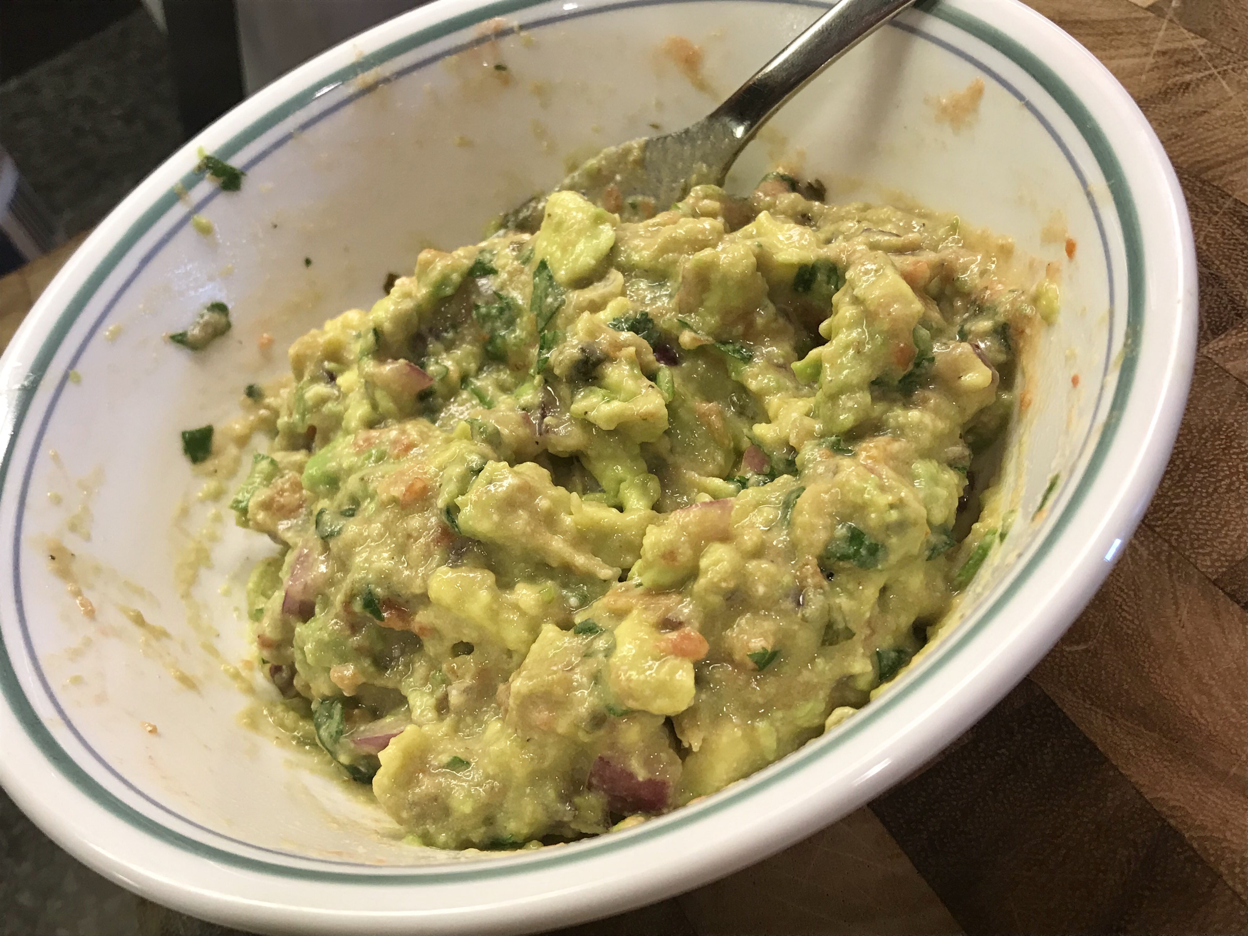 In a bowl, mash the avocado with a fork. Add the salsa and yoghurt. Mix well. Season with salt.