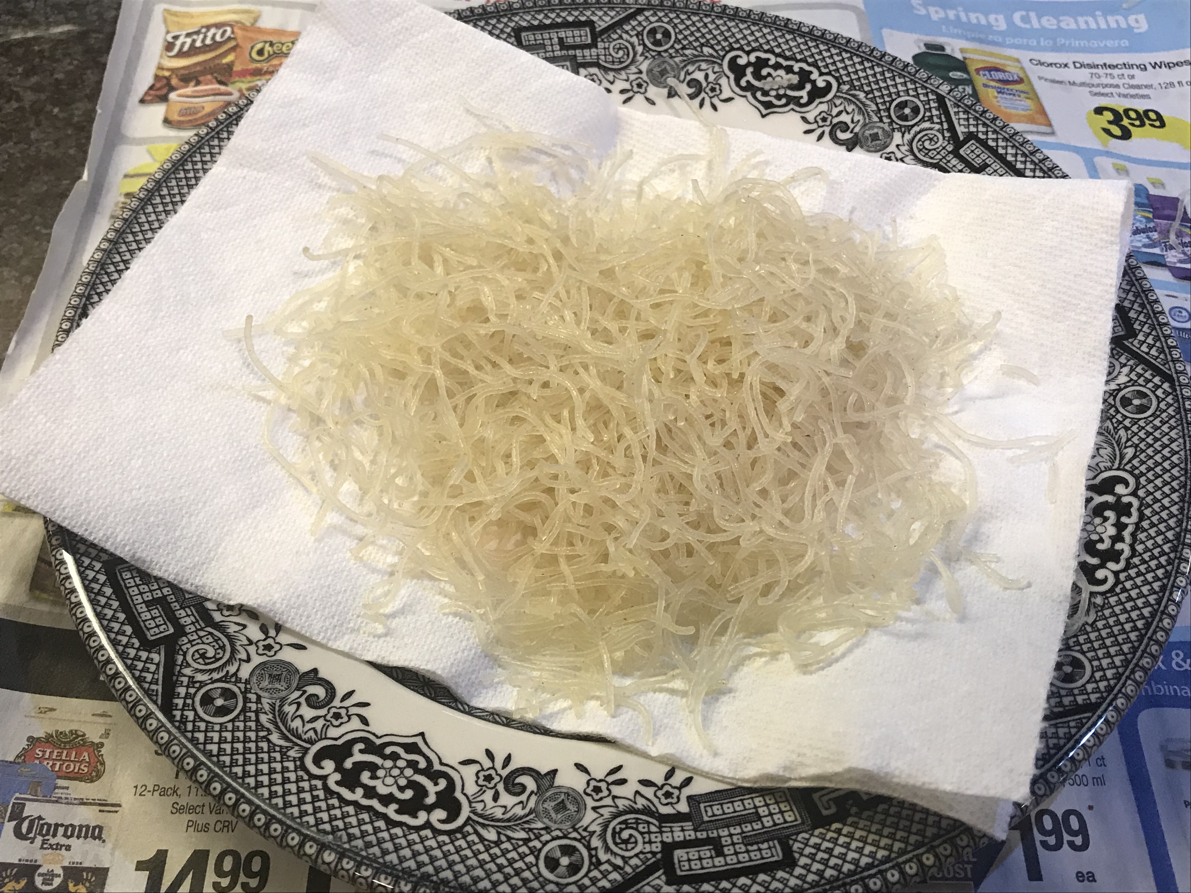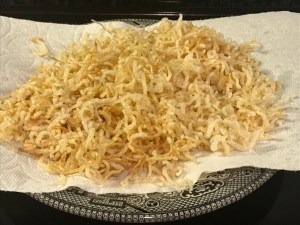 Frill #1 : I garnish the soup with fried rice vermicelli, which my daughter loves.