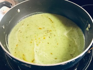 Fast-forward : A couple of weeks later, back in my kitchen, many thousands of miles away from my hometown Mumbai, and I’m craving the same soup. I use basic five ingredients, and to simplify it further, I decide to substitute one of the main components, with store-bought help – unsweetened almond milk, which is readily available nowadays. Fresh broccoli is a cruciferous available all year round and a powerhouse of nutrients and vitamins. I also incorporate the stalks in the soup. The final touch in the cooking process, is a tempering of cumin seeds and paprika in the soup.