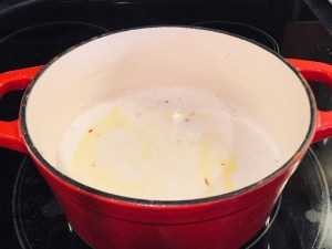 Once the millets are cooked and the milk is thickened, add the sugar. Taste to check the level of sweetness, can add more too, if required. Remove from heat and stir well. Add the saffron strands.