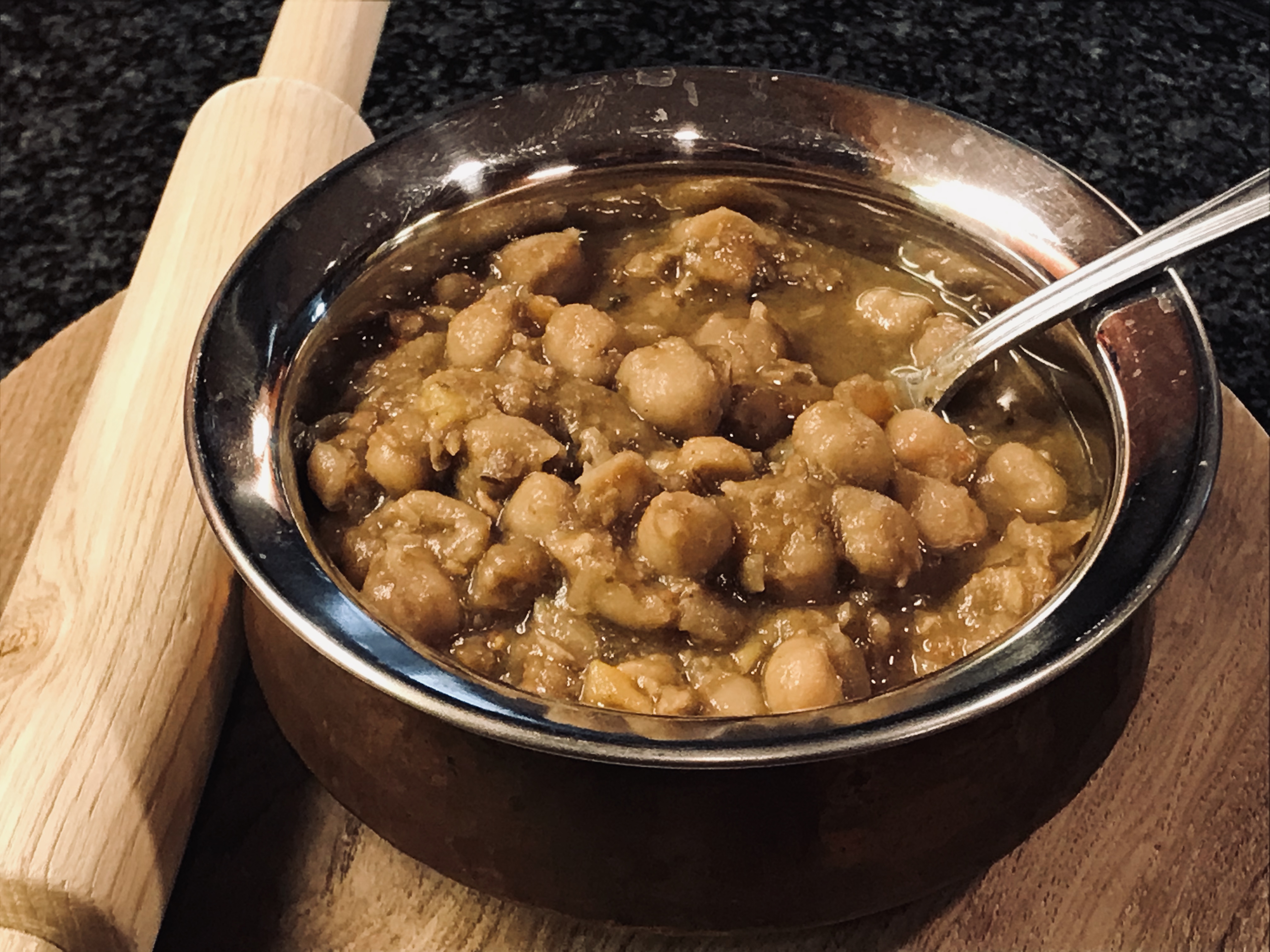 A recipe that stems from my mind. No onions, no garlic, and no chopping. When the mind is active, but the hands feel kind of lethargic, in the kitchen. Just raided my masala dabba and spice cabinet, and luckily, for me and my hungry family victims, the chanas turned out yummy! So I decided to save the recipe from my mind to my food blog, instantly.
