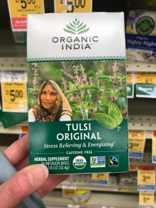 Traditionally, one would use fresh Tulsi or holy basil leaves in India, if it grows in your home or garden. Since I don’t have a Tulsi plant in our home, I have substituted using dried tulsi leaves or a Tulsi chai teabag.