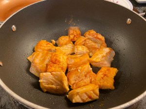 Fresh salmon, 1 lb., washed, cleaned pat-dry and cut into chunks.